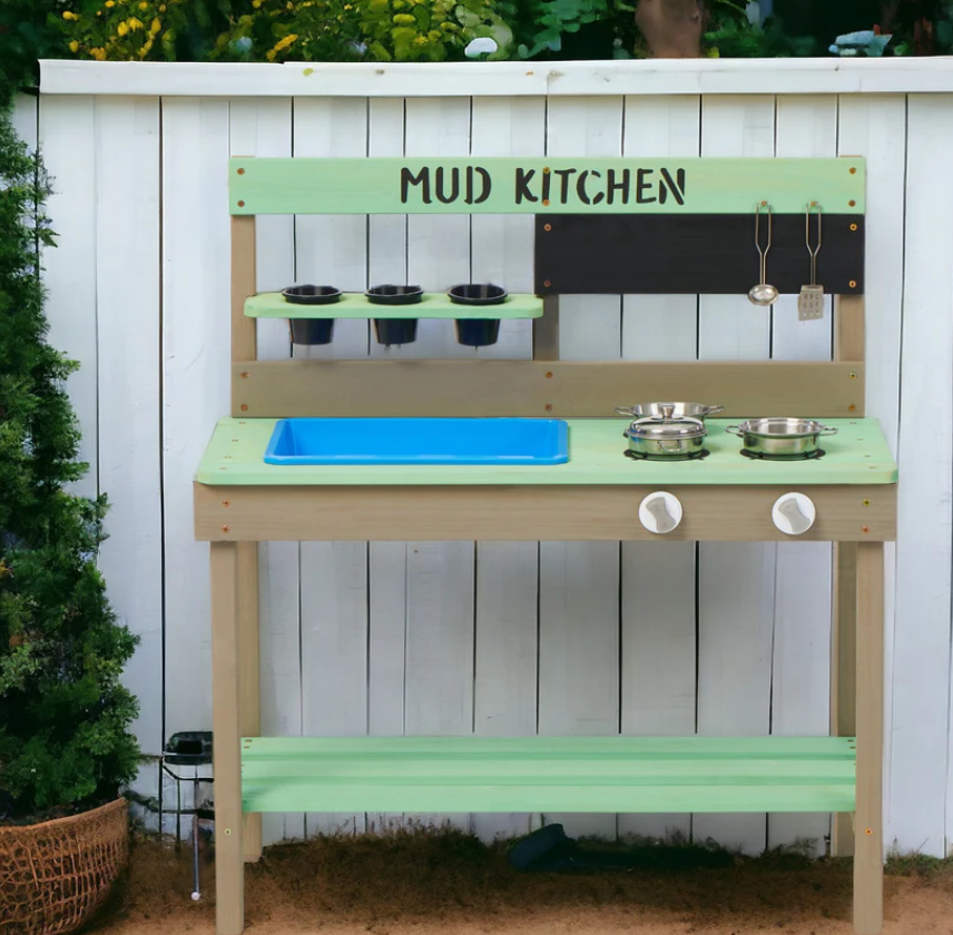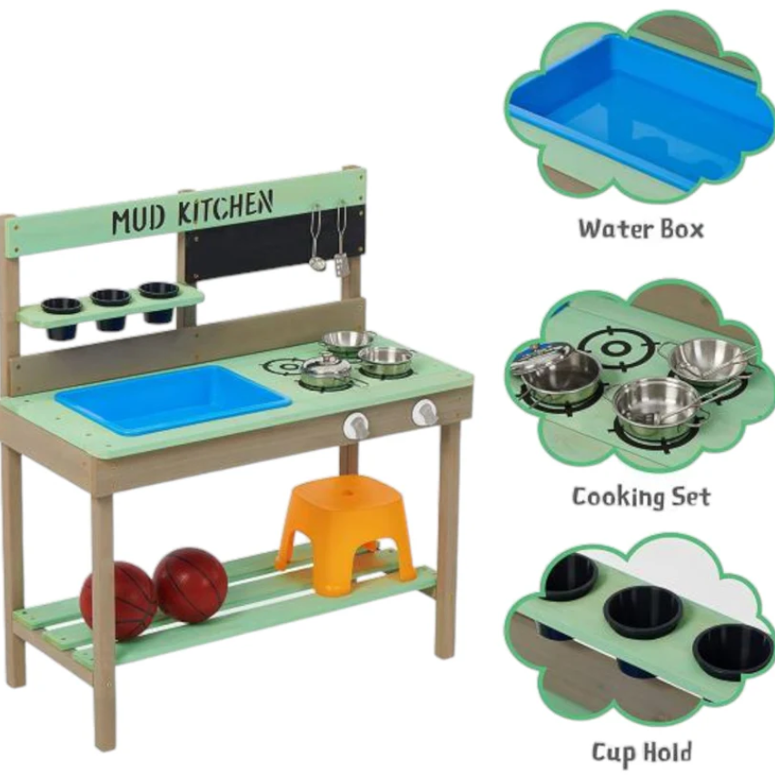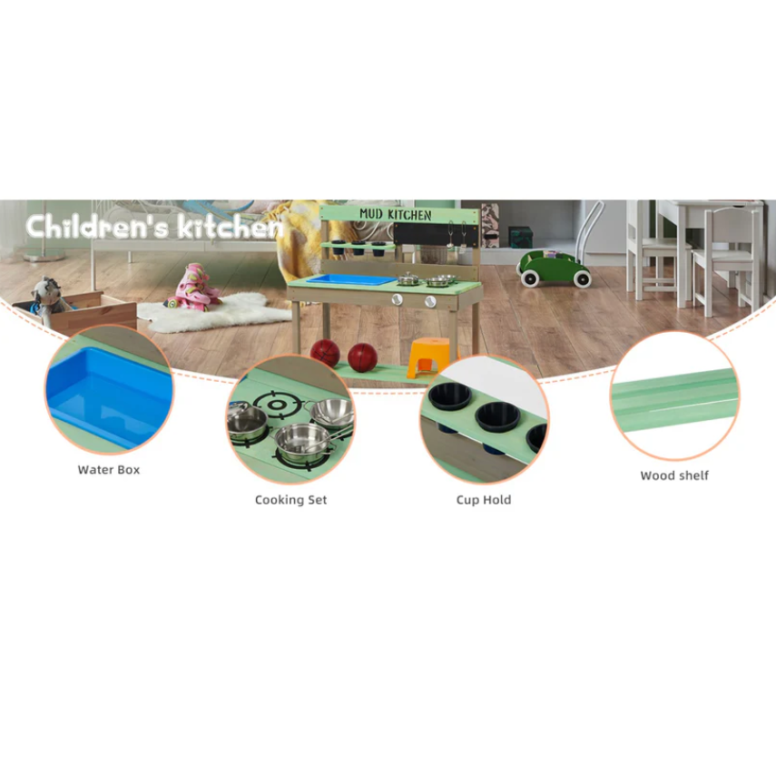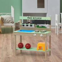 Детските кухненски аксесоари включени в комплекта, саксии, прибори, мивка осигуряват практичен опит за децата;