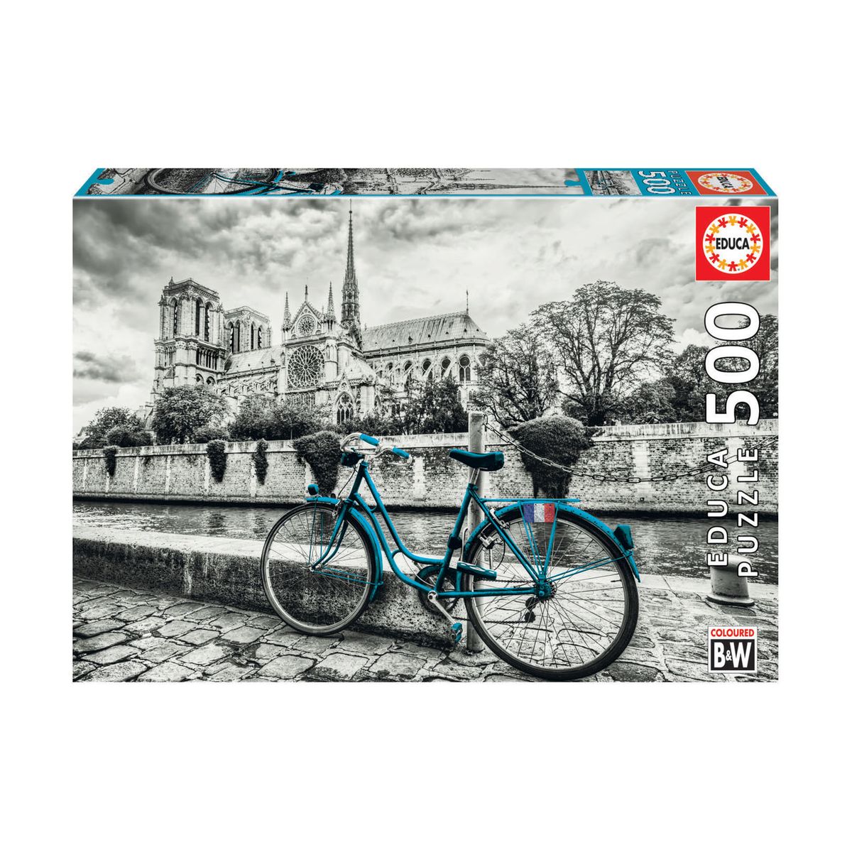 Пъзел Educa, С колело в близост до Нотр Дам, черно-бял, 500 части