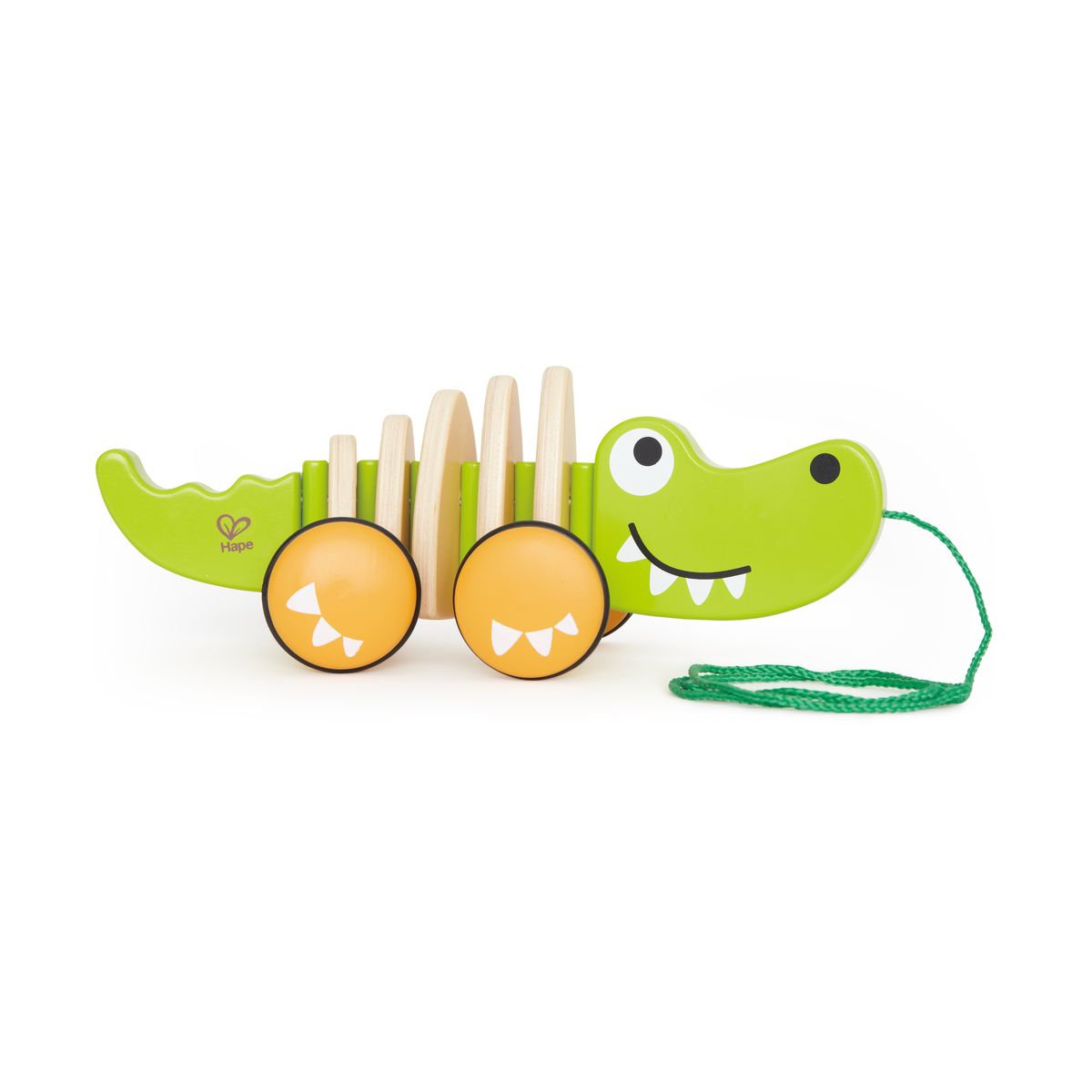 Дървено крокодилче за дърпане, лек и удобен за носене;