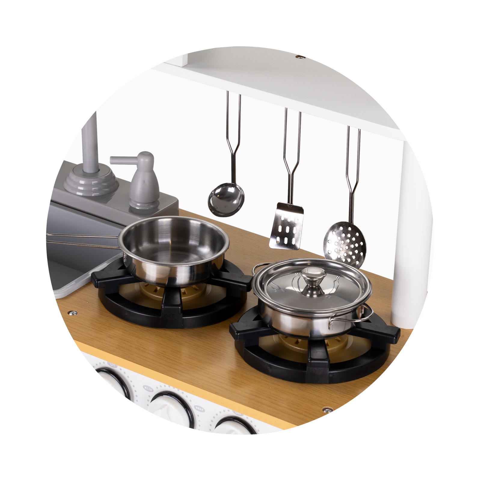 Подарете незабравими моменти и часове забавна игра на готвене с реалистична дървена кухня с различни аксесоари и пособия за готвене;