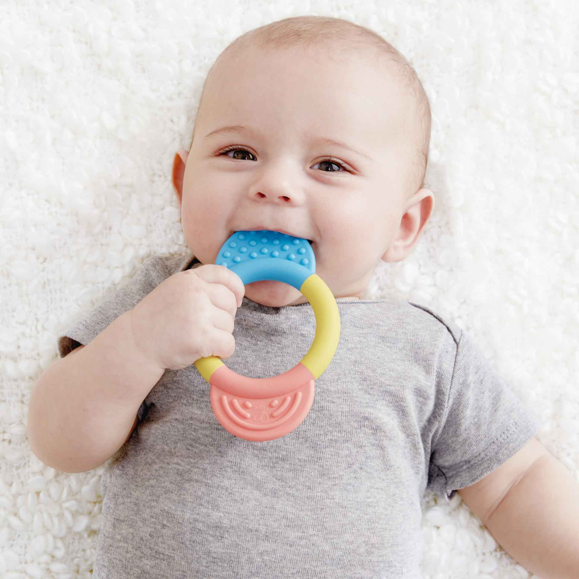Благодарение на ринга, лесно може да се хваща и задържа в бебешката ръчичка;