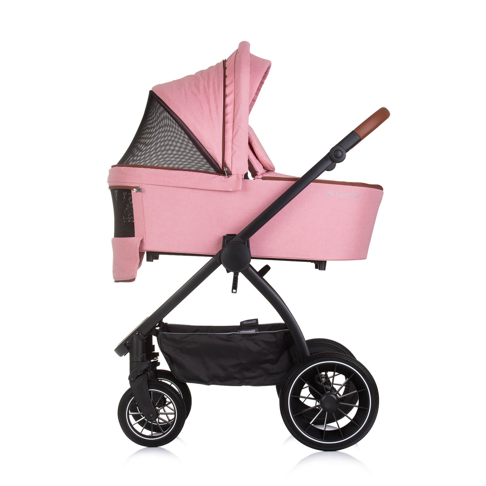 Съвместимо с рамата на количката, посредством адаптори, които са включени в комплекта;