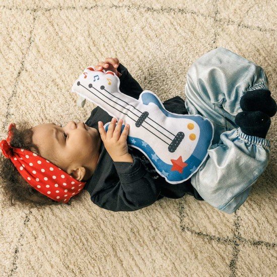 Разполага с музикална кутия и оригинални рокендрол мелодии, които бебето да активира чрез потупване;