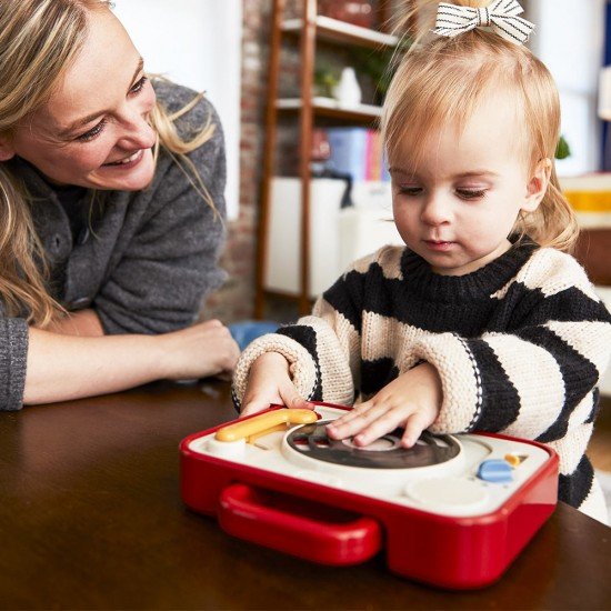 Докато малките ръчички на детенцето изследват плъзгачите и въртят плочата, те не просто правят музика, а овладяват координацията око-ръка и укрепват фините си двигателни умения;