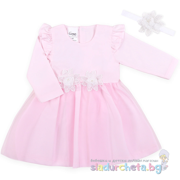 Бебешки и детски магазин "СЛАДУРЧЕТА" и марката "Комес" представят на Вашето внимание бебешка рокля със следните характеристики: