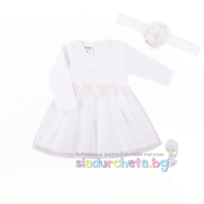Бебешки и детски магазин "СЛАДУРЧЕТА" и марката "Комес" представят на Вашето внимание бебешка рокля със следните характеристики:
