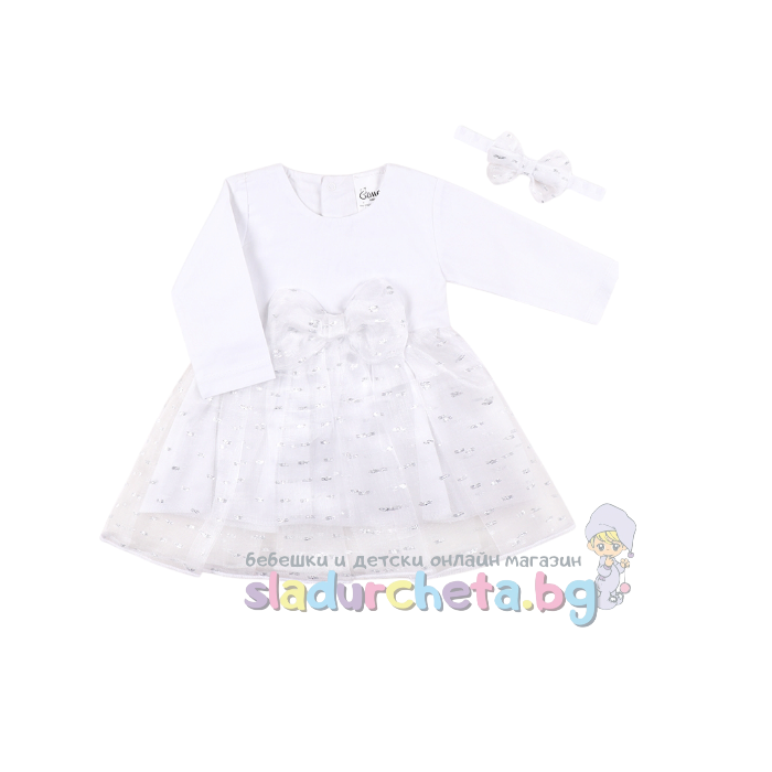 Бебешки и детски магазин "СЛАДУРЧЕТА" и марката "Комес" представят на Вашето внимание бебешка рокля със следните характеристики: