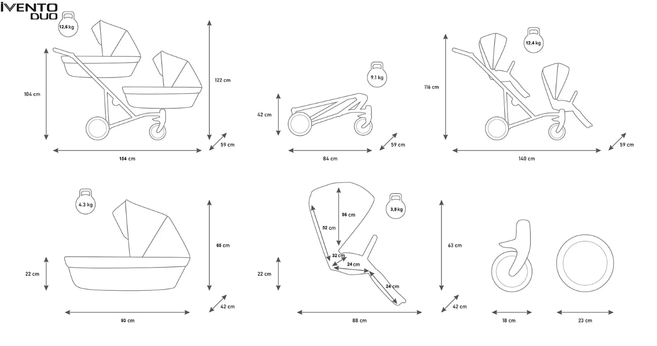 • Количка с летен кош: 12.4 кг;