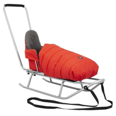 Спалният чувал е с ленти с велкро лепенки, които позволяват закрепването му към седалката и облегалка за глава, която е прикрепена към гърба на шейната, което предотвратява плъзгането на спалния чувал, а допълнителните презрамки повишават безопасността на Вашето дете;