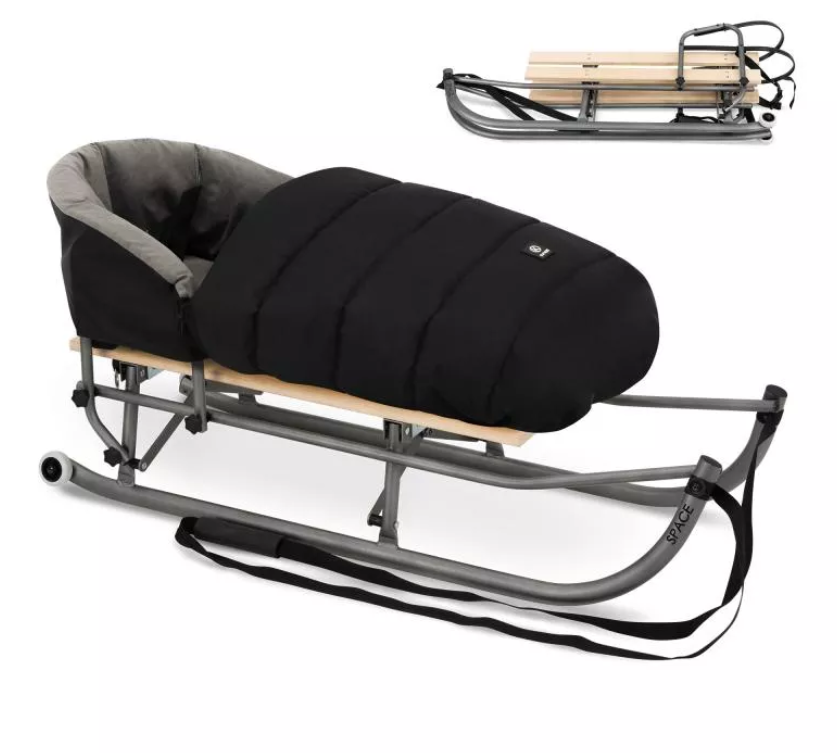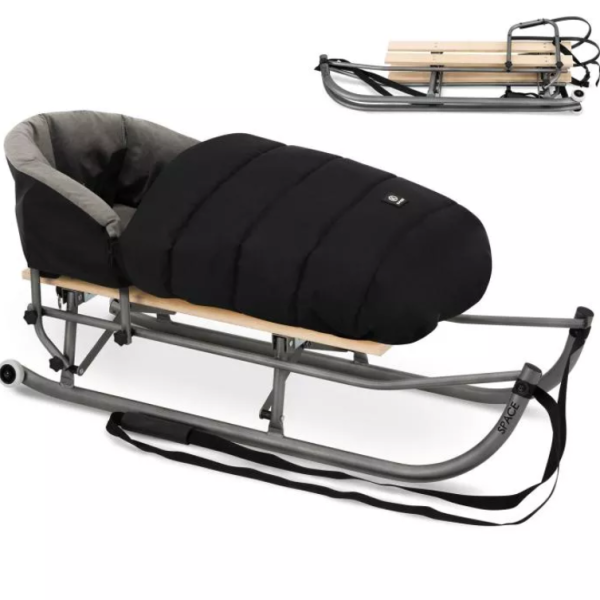 Издръжлива сгъваема шейна с облегалка и спален чувал;
