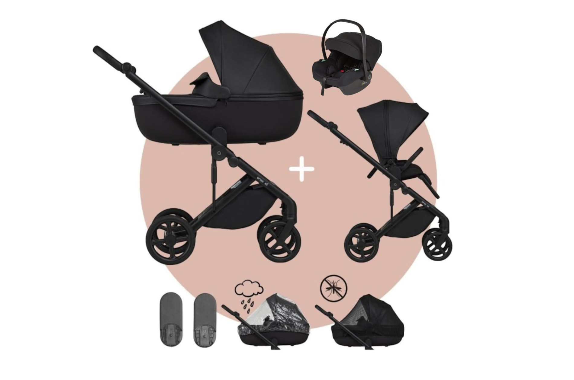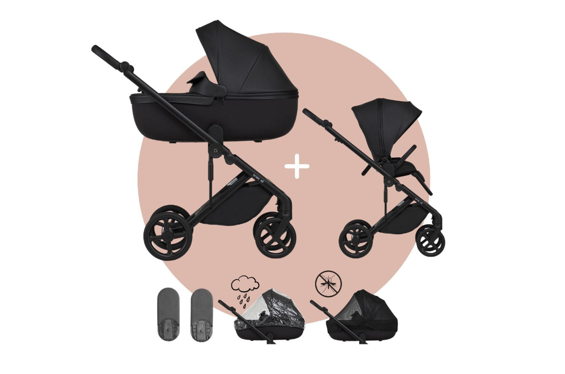 Съвместимо с рамата на количката, посредством адаптори, които са включени в комплекта;