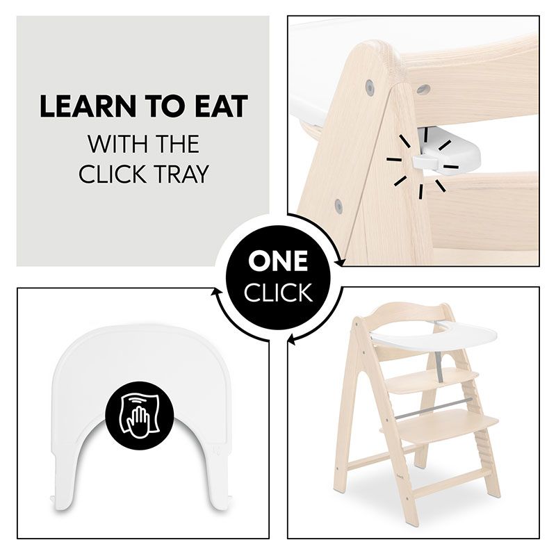 С Arketa Click Tray вашето дете има много място за изследване. Таблата за храна може просто да се щракне върху дървения преден панел и бързо да се избърше (предлага се отделно);