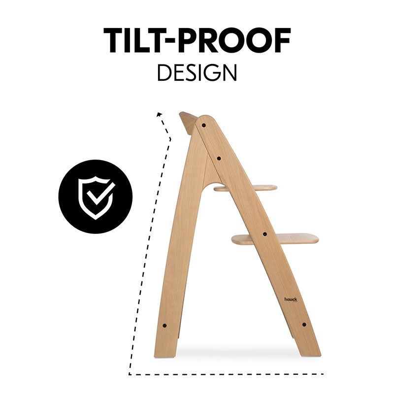 Включена предпазна каишка, 5-точков колан и борд предпазват вашето дете, така че можете да се насладите на спокойно хранене;
