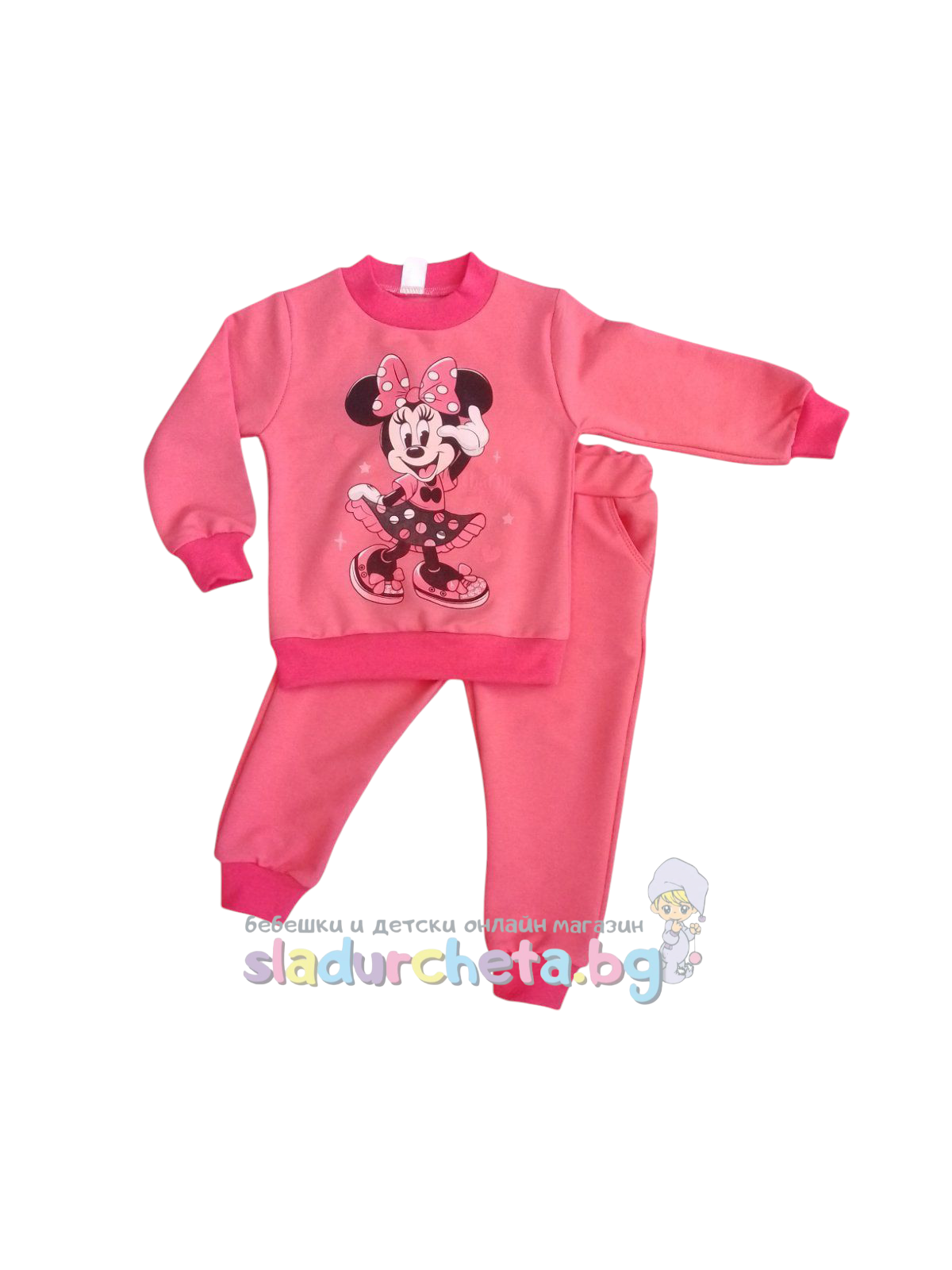 Блузата е с дълъг ръкав в цвят диня с цветна апликация на Мини Маус;