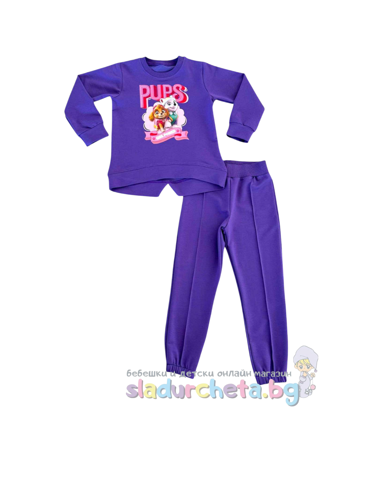 Блузата е с дълъг ръкав в лилав цвят с цветна апликация на Пес Патрул;
