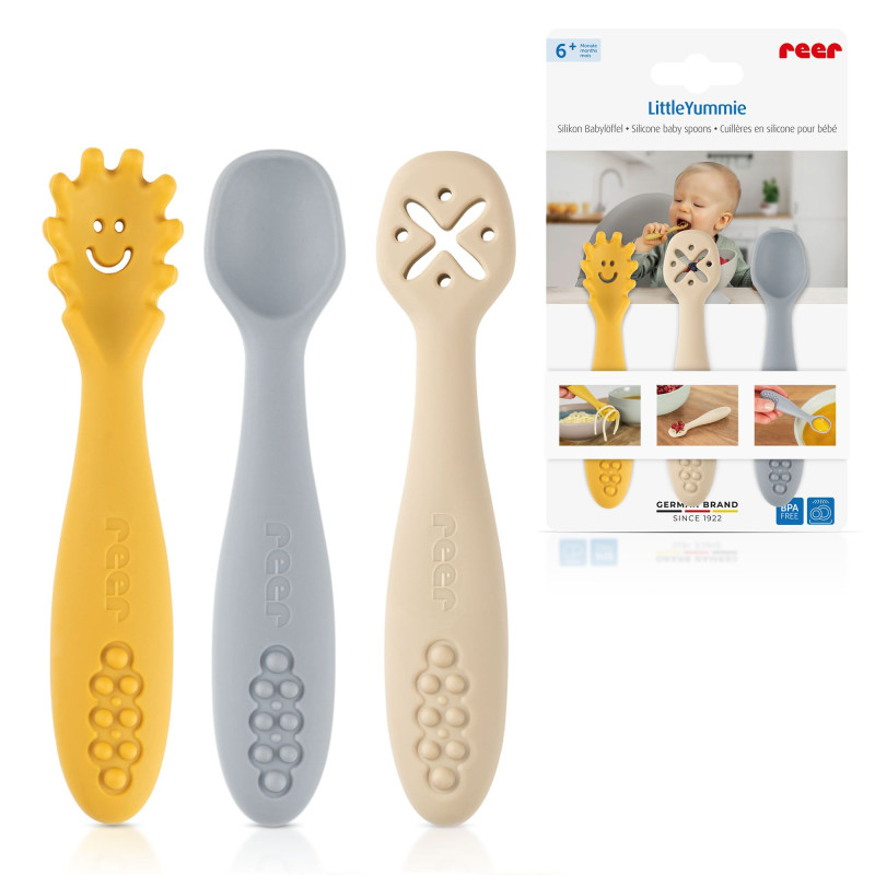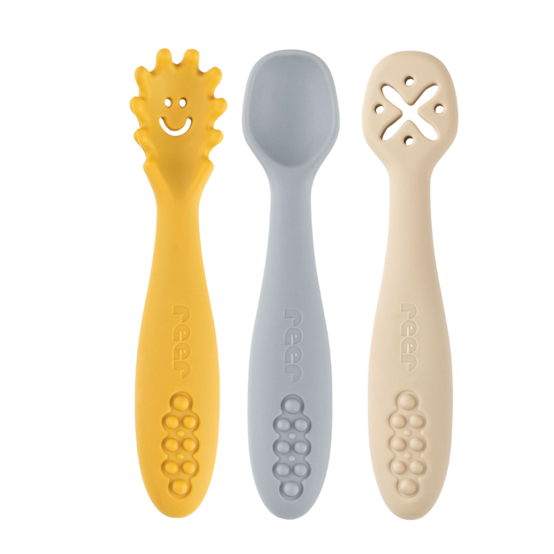 Симпатичните малки прибори, специално разработени за малките несигурни детски ръчички са с 3 различни форми и подходящи за храни със всякаква текстура;
