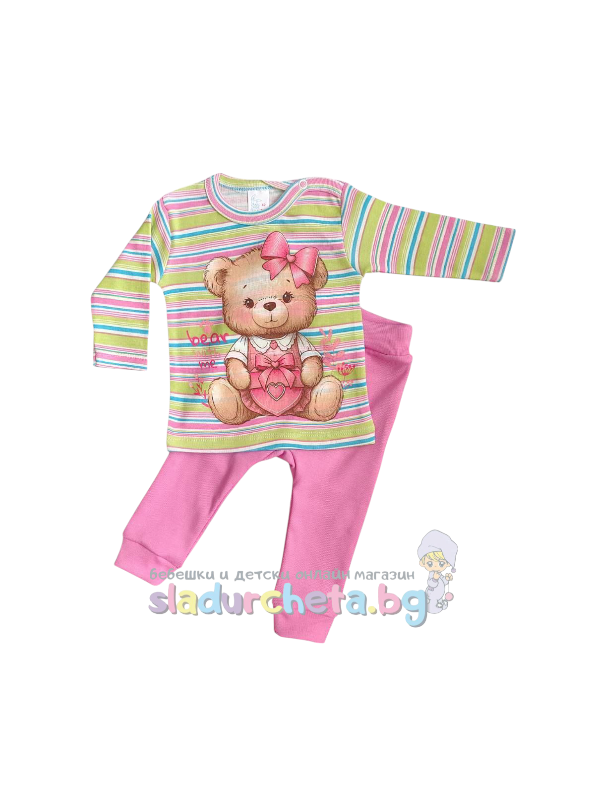 Бебешки и детски магазин "СЛАДУРЧЕТА" и марката "Светли" представят на Вашето внимание бебешки комплект от две части със следните характеристики: