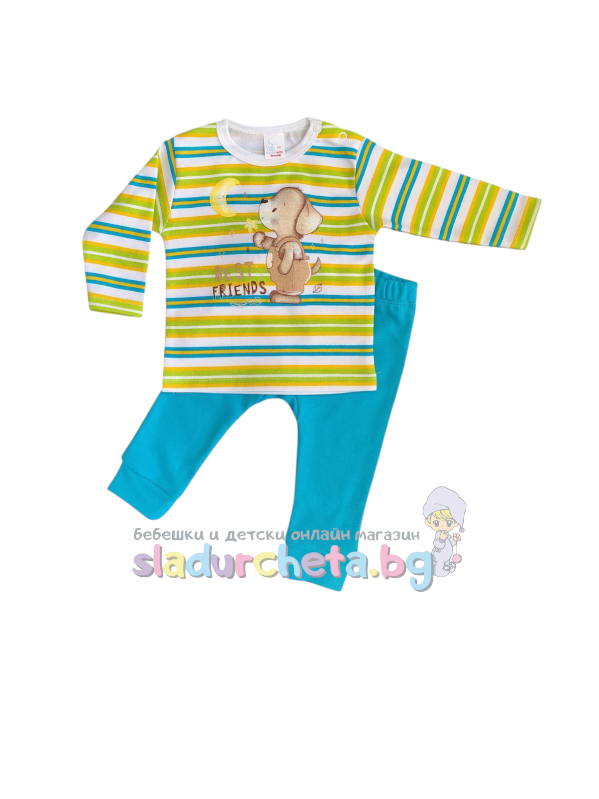 Бебешки и детски магазин "СЛАДУРЧЕТА" и марката "Светли" представят на Вашето внимание бебешки комплект от две части със следните характеристики: