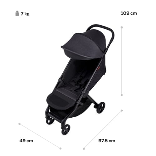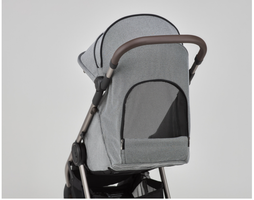 Въздухопропускливият сенник, изработен от плат, обогатен с UV филтър, предпазва бебето от пряка слънчева светлина и други външни фактори;