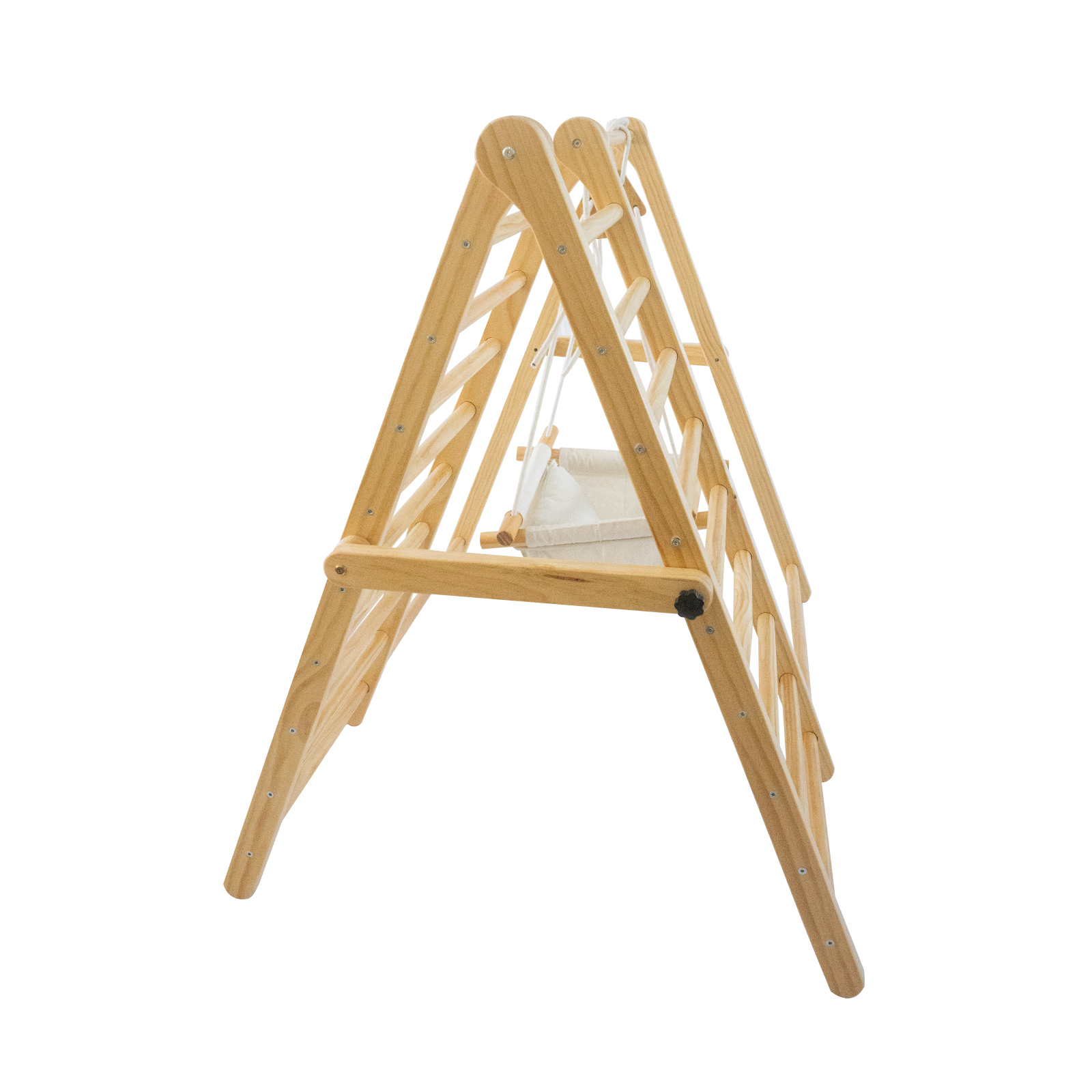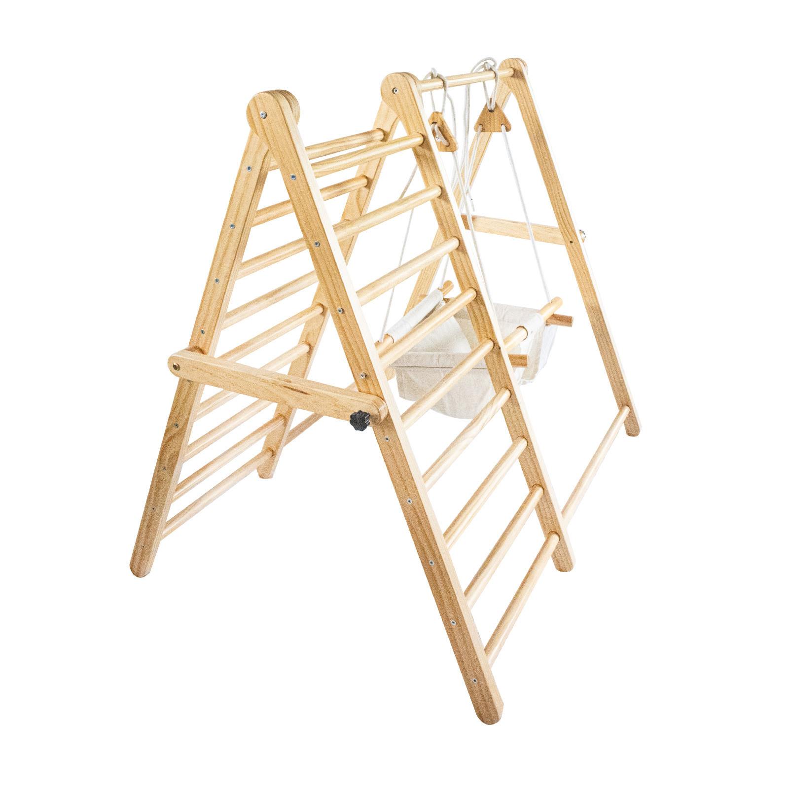 • Регулируема по височина люлка, оборудвана с удебелени въжета и дървени куки;