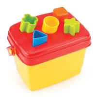 Комплекта съдържа кофичка - сортер и 10 цветни елемента;