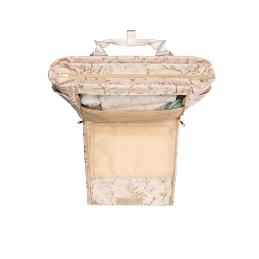 Падаща предна страна с вградена подложка за повиване, джоб и достъп до основното отделение;
