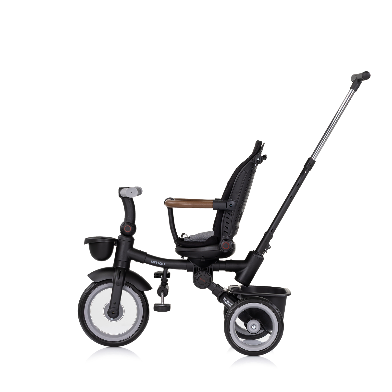 Сенника, дръжката и предпазния борд се отстраняват и играчката се трансформира в триколка за по-голямо дете;
