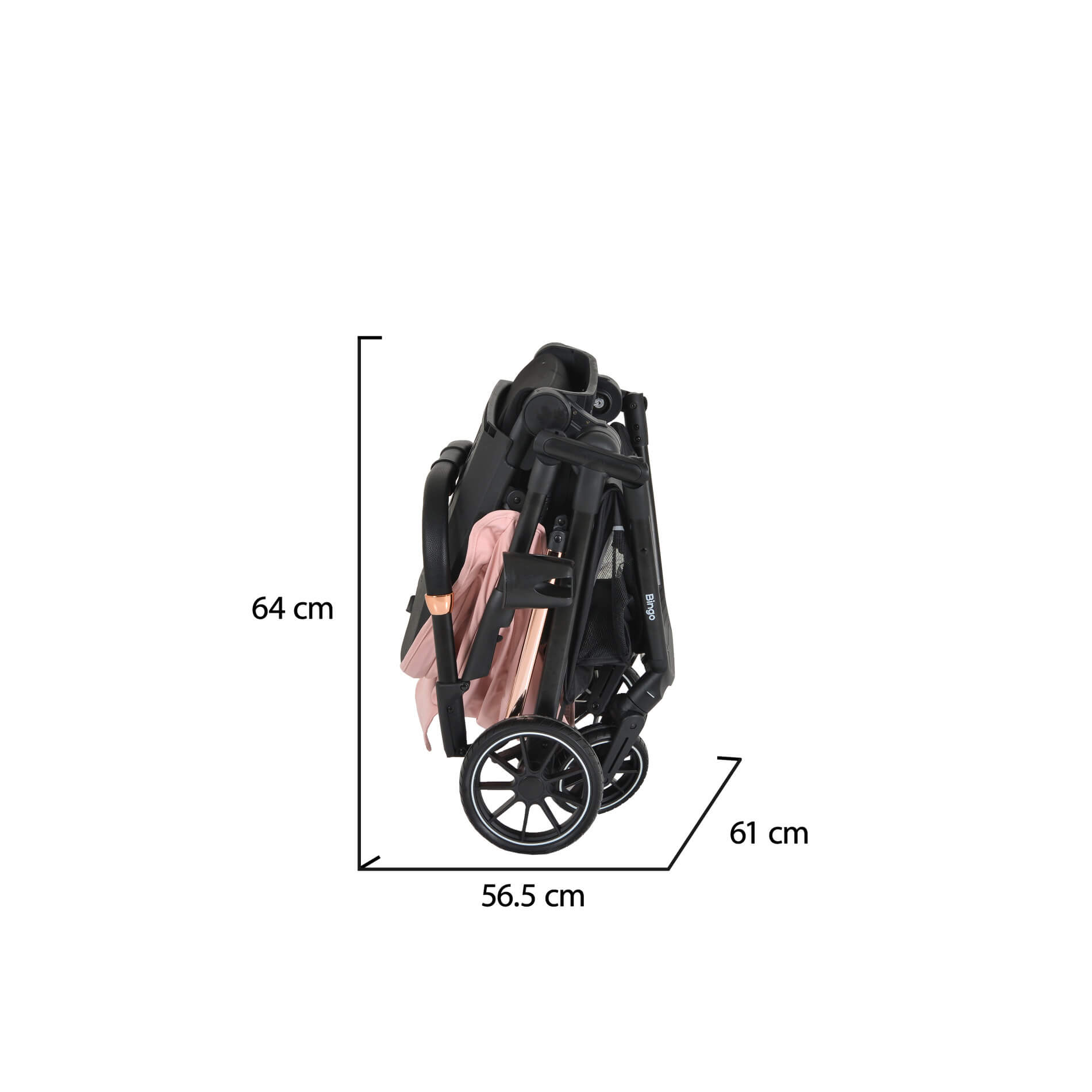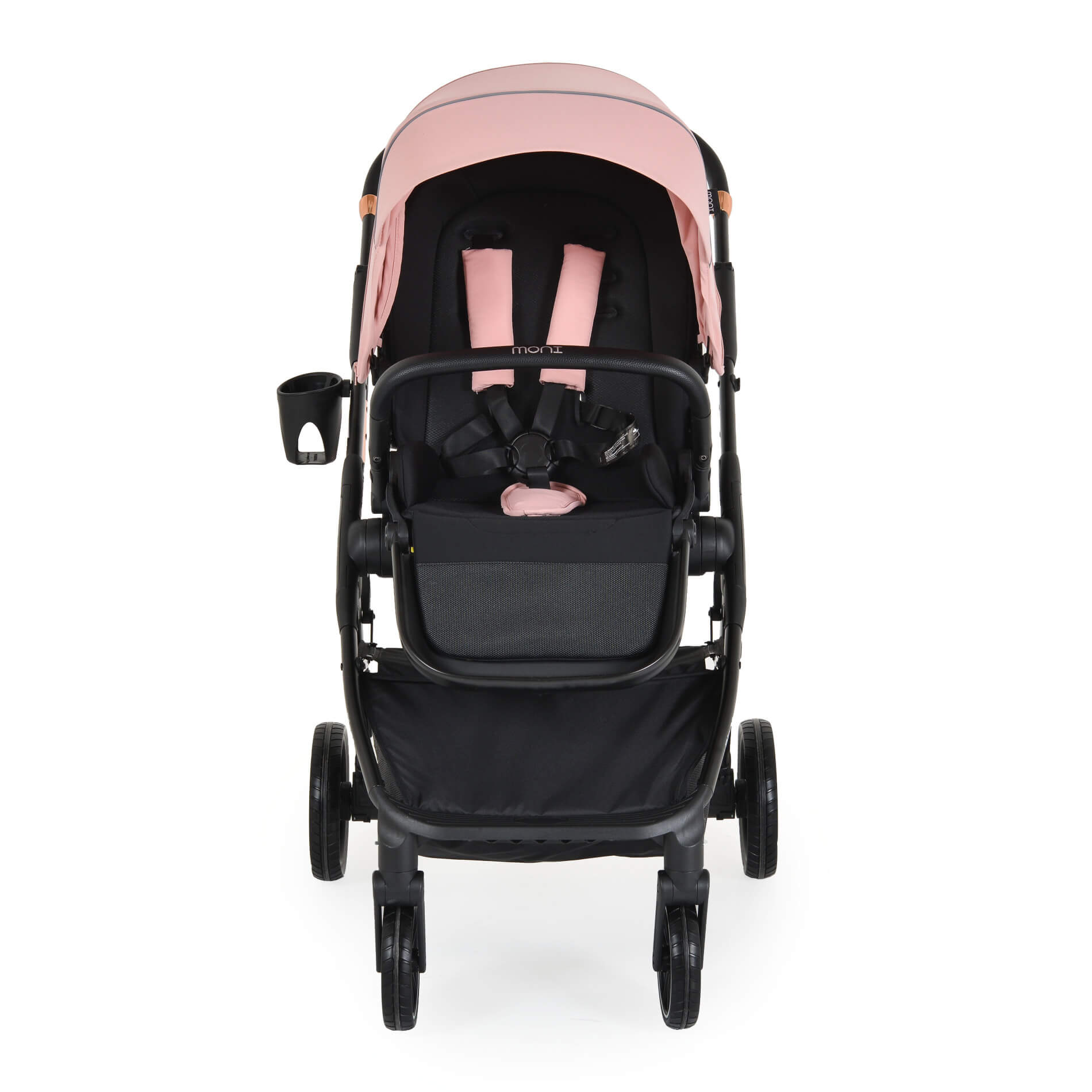 Предни колела с въртене на 360°, задни колела със свързана спирачка и амортисьори, осигуряващи допълнителен комфорт и стабилност при возене;