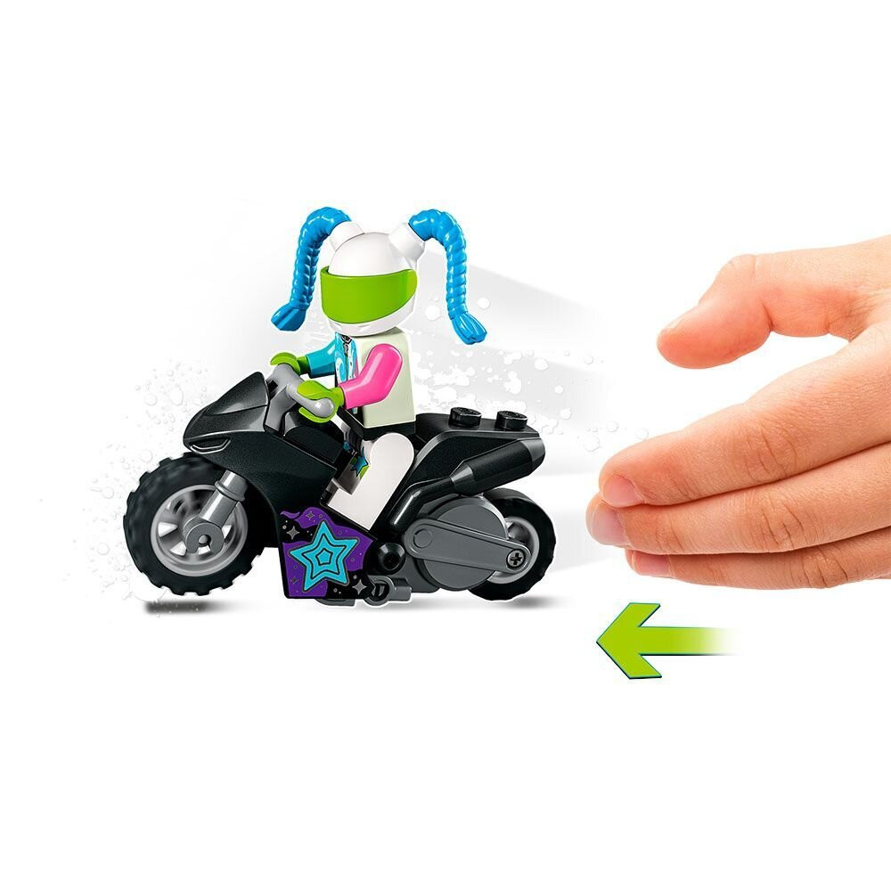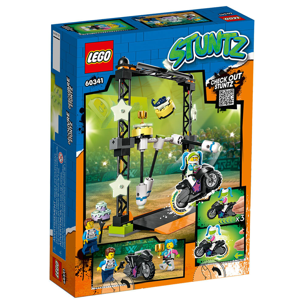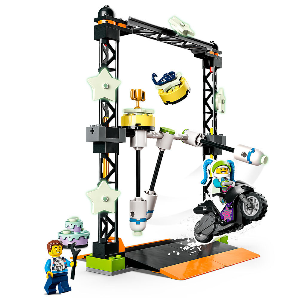 Комплектът включва арена The Knockdown Stunt Challenge, каскадьорски мотор, задвижван с маховик и минифигури на герои от телевизионната поредица LEGO City Adventures Galactic Poppy Star и Harl Hubbs;