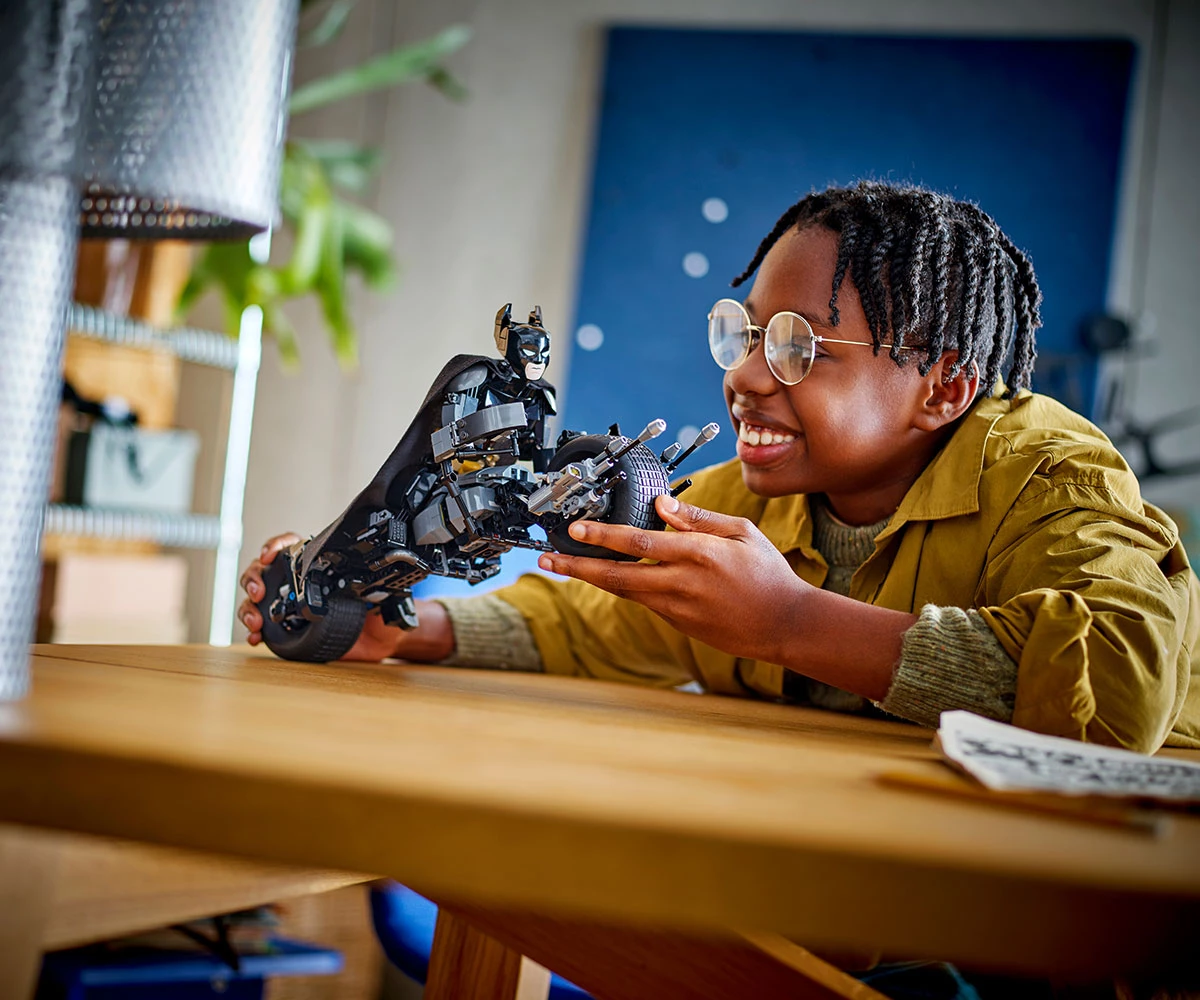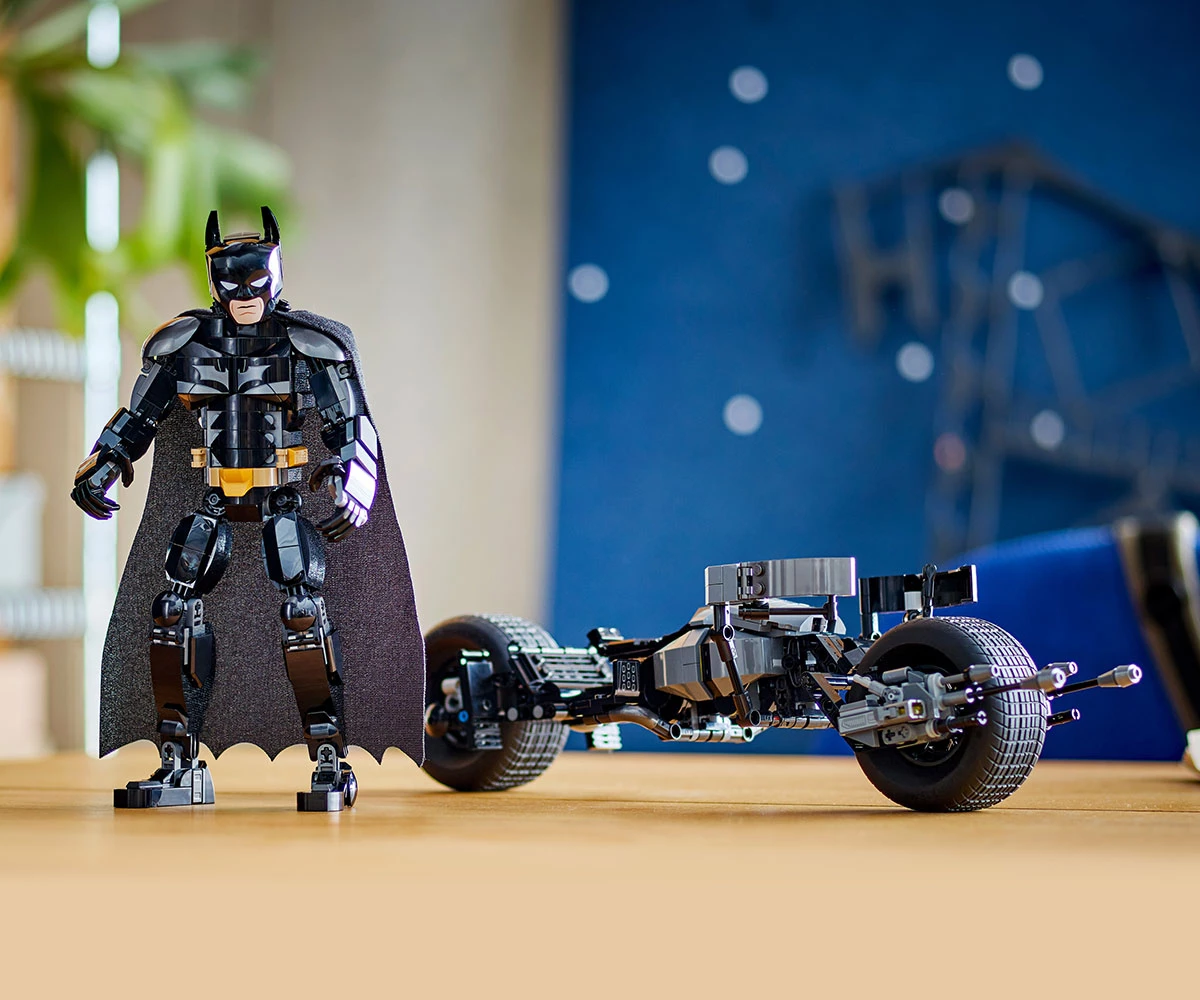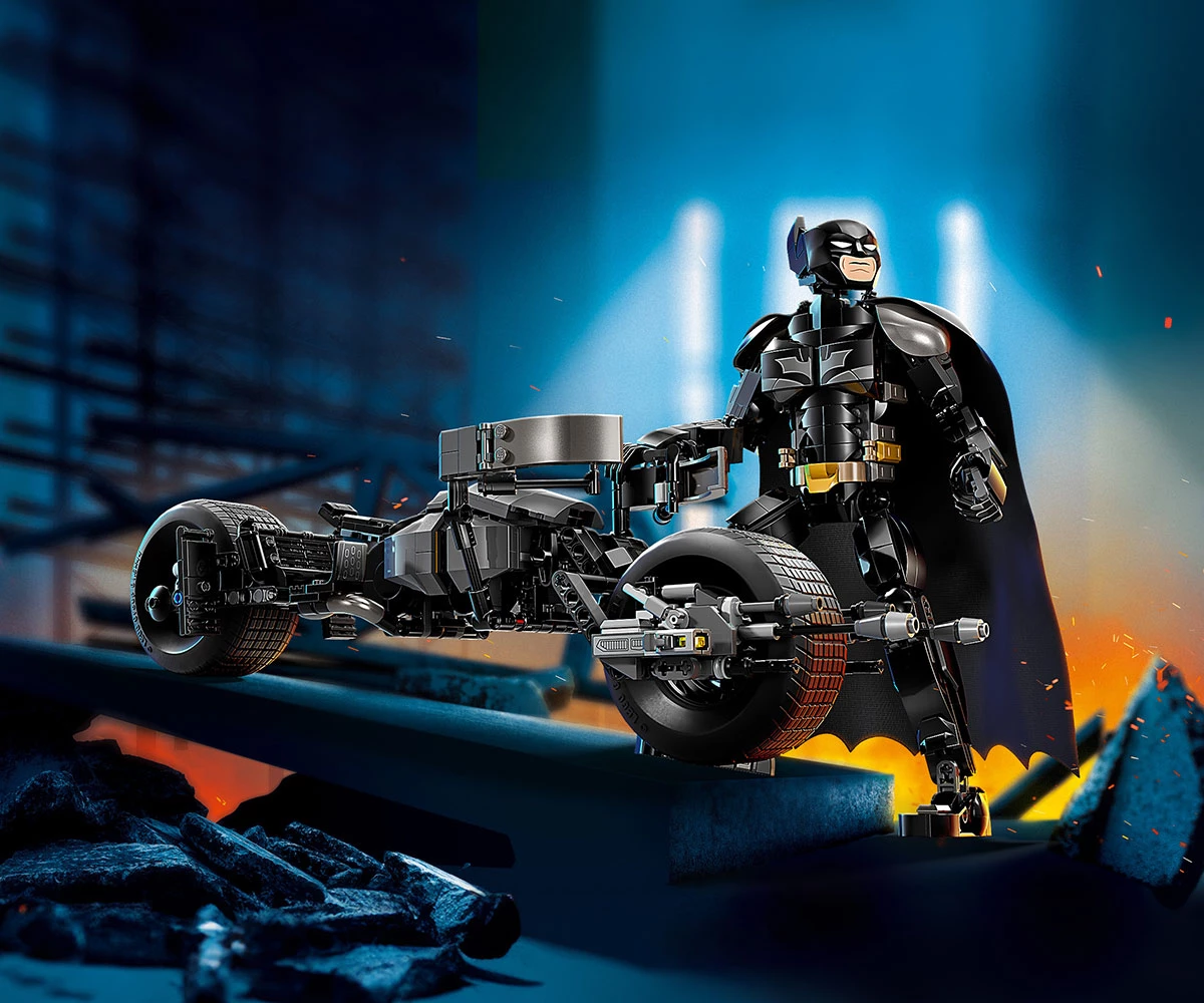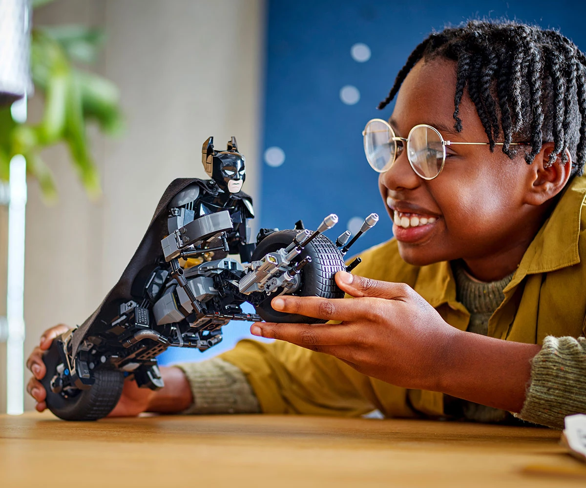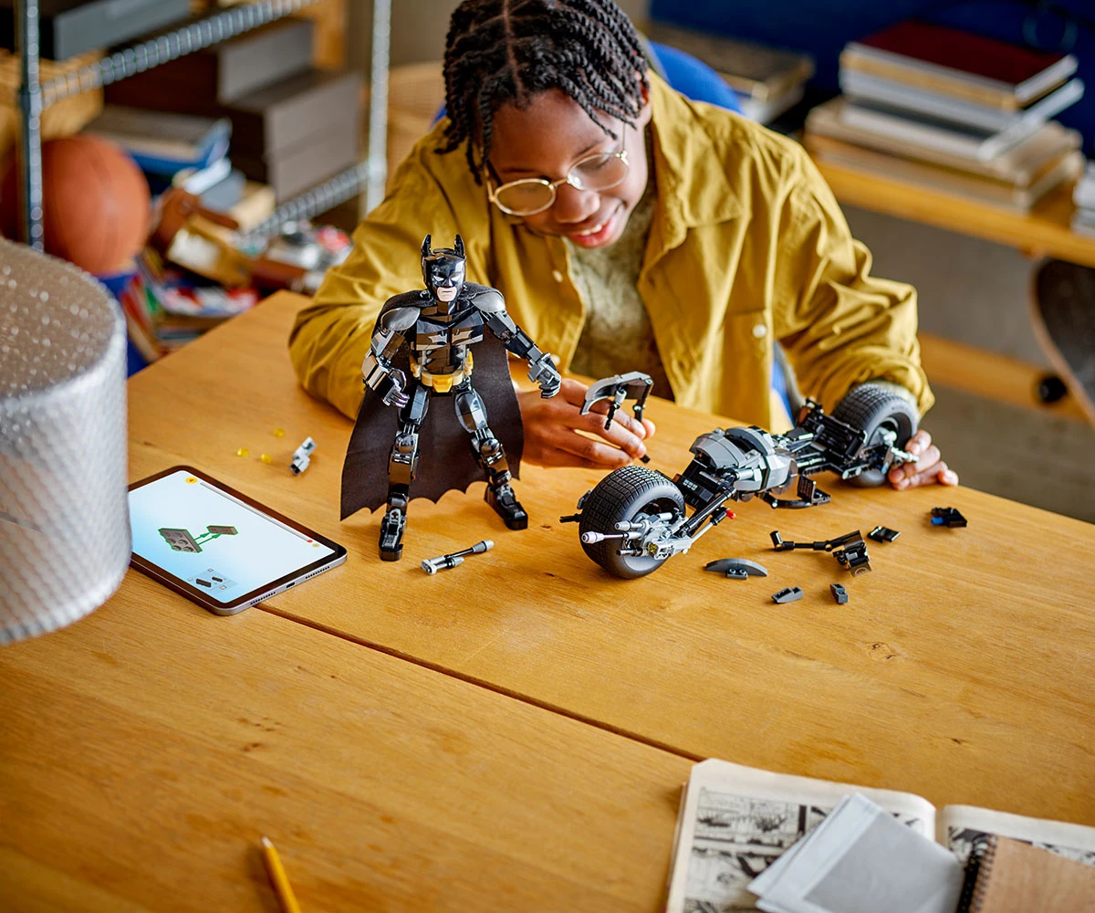 Подвижна фигура на супергерой – подвижните рамене, ръце, таз и крака позволяват на децата да създават екшън пози със своите Батман, мотоциклет и изстрелващи устройства от LEGO®;