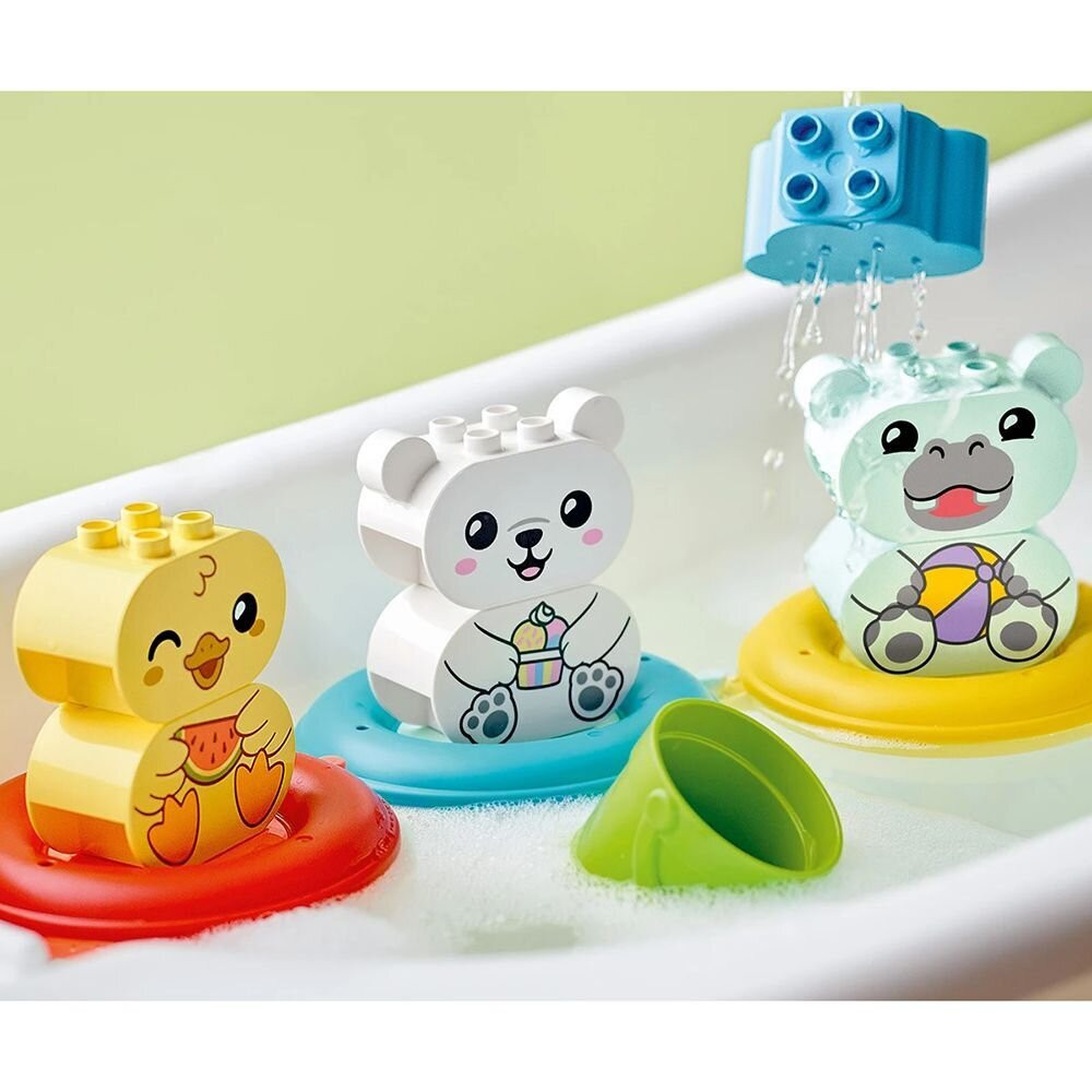 Комплектът включва хипопотам, патица и бяла мечка, кофа, дъждовен облак и 3 плаващи пръстена;