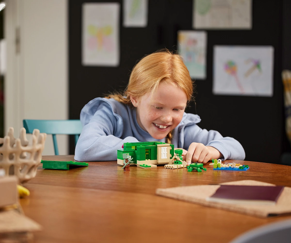 Комбинира се с други комплекти – „Къща на плажа на костенурките“ се интегрира лесно с други играчки LEGO® Minecraft® (продават се отделно) за още по-голямо забавление;