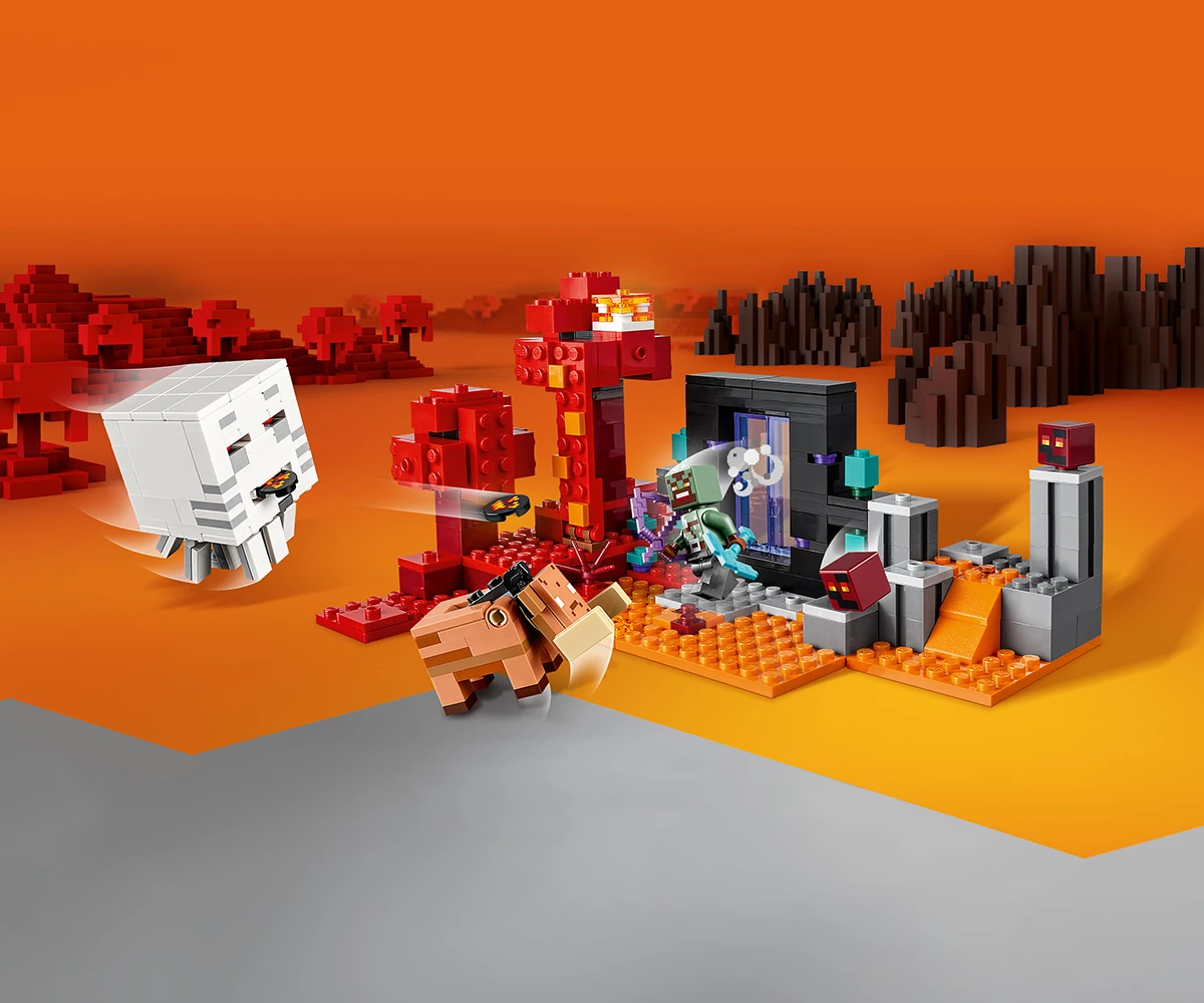 Играчка LEGO® Minecraft® с портала към Ада – комплектът за приключения от Minecraft за геймъри и момчета и момичета над 8 години включва екшън сцени за конструиране с емблематични герои от Minecraft;