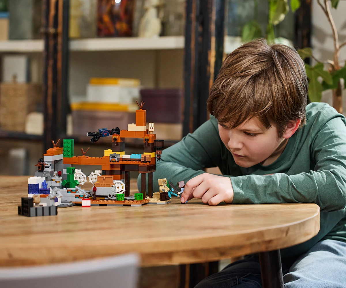 Децата се присъединяват към изследователя в неплодородните земи в изоставена мина в биома, където поставят TNT сред скалите и управляват функция за взривяване, за да открият мед, злато, червен камък и аметистови кристали;