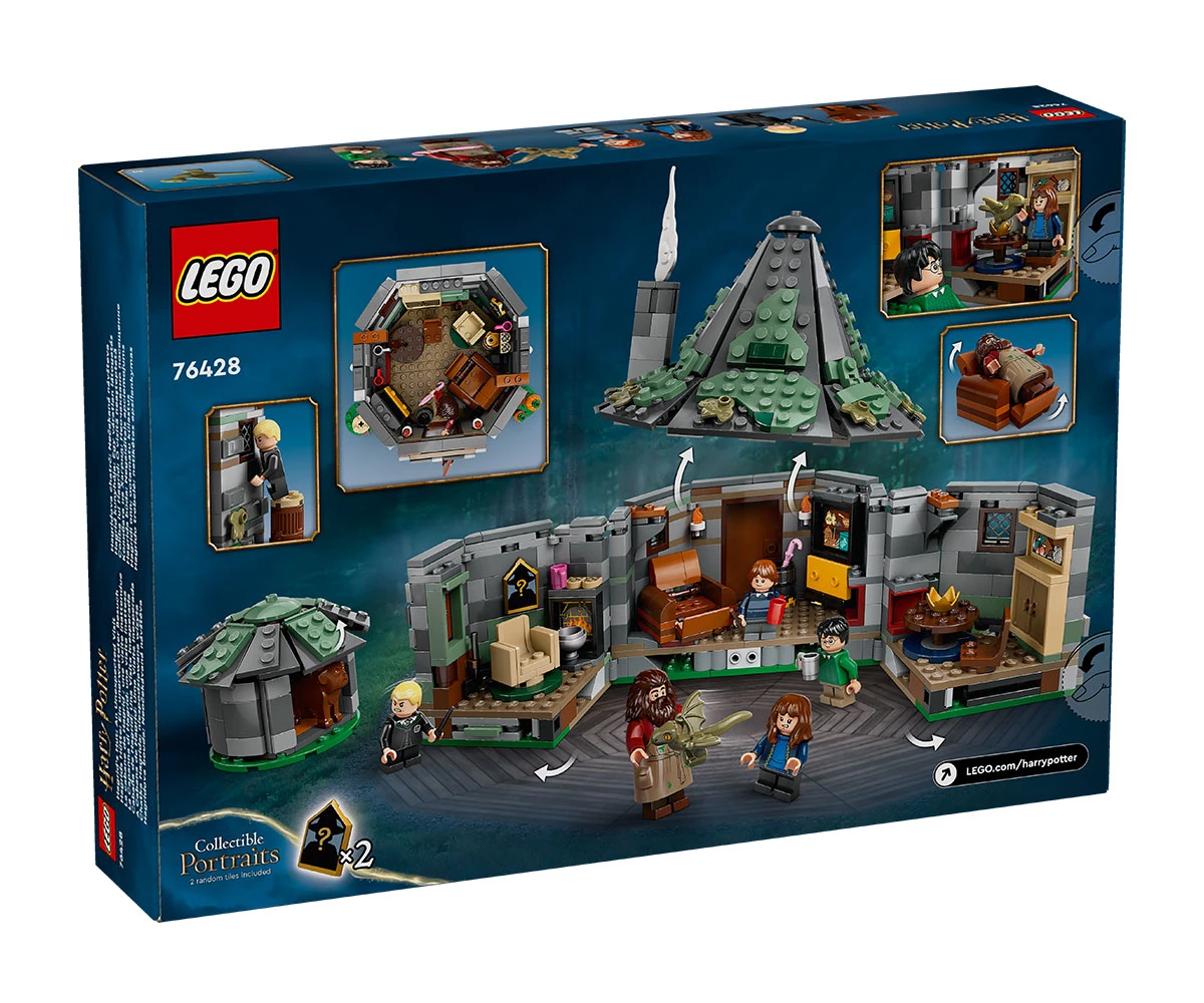2 от 14-те колекционерски портрета в Хогуортс – играчката за построяване включва златисти елементи, отпечатани с 2 от 14-те произволни портрета в Хогуортс, които са изложени на показ в колибата на Хагрид;
