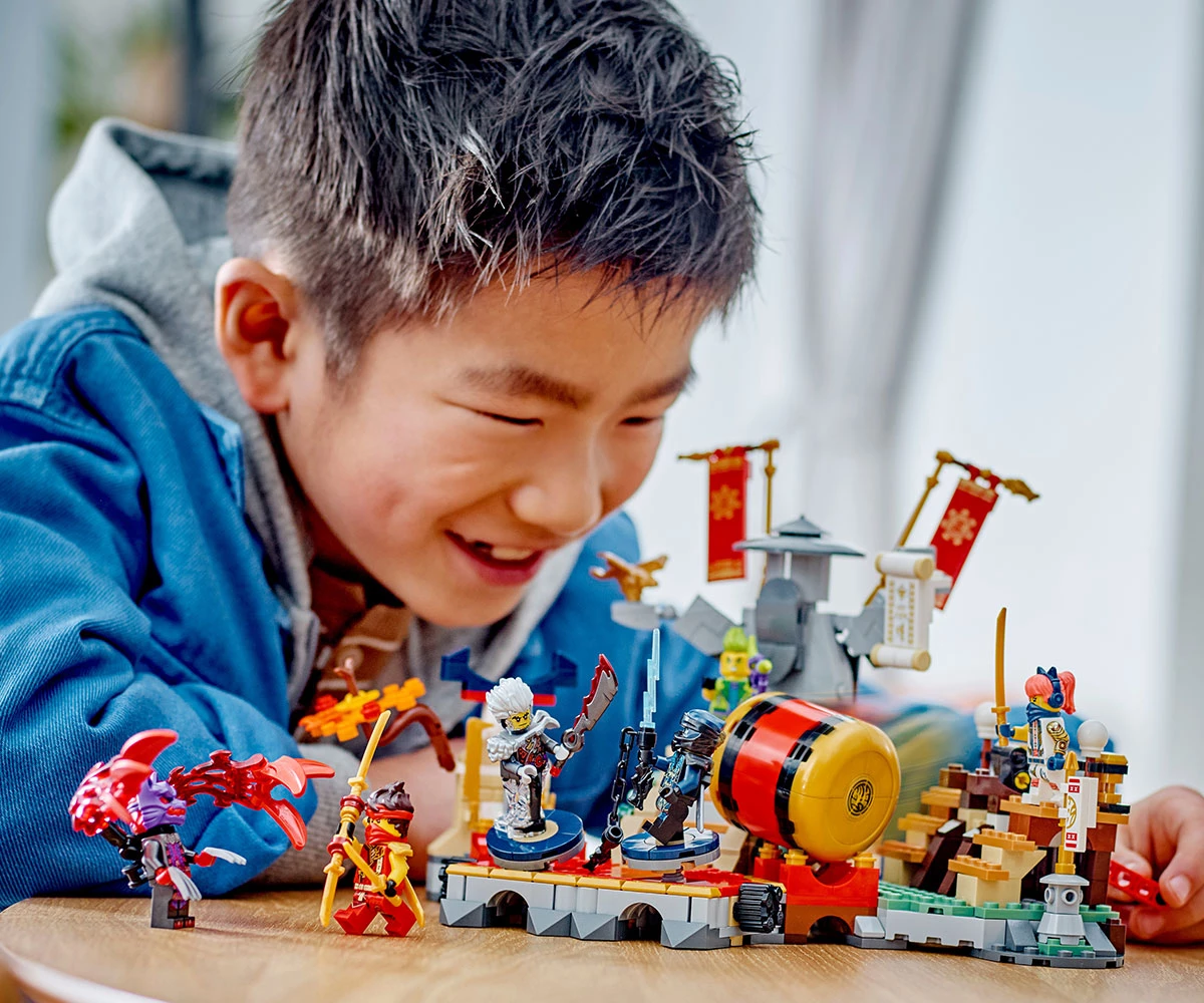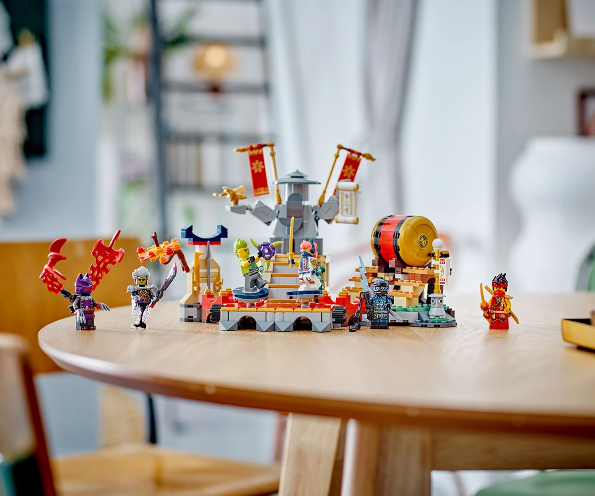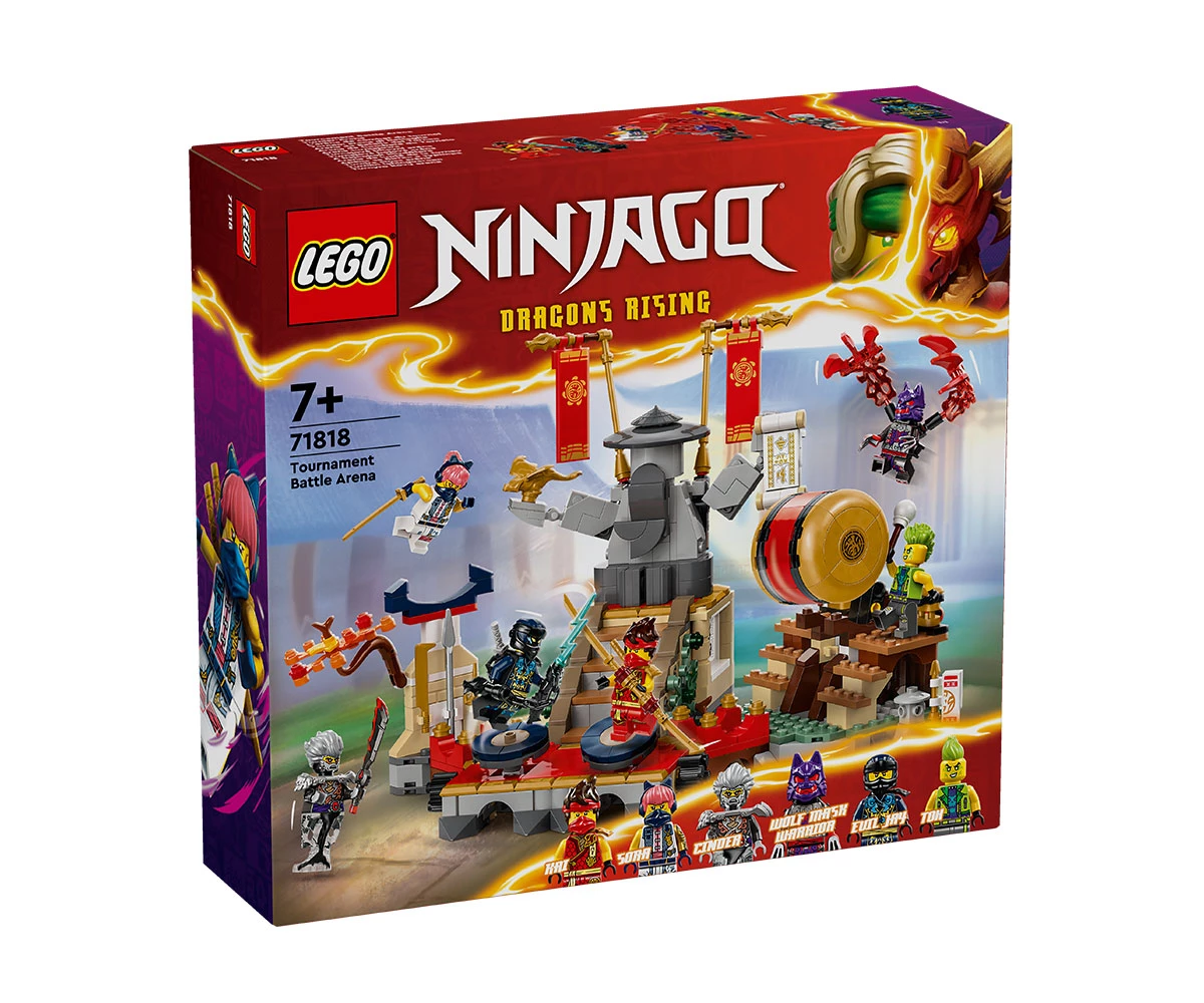 Боен комплект за игра NINJAGO® за деца – момчета и момичета на възраст 7+ могат да пресъздадат невероятни екшън сцени от сезон 2 на ТВ сериала NINJAGO Dragons Rising с комплекта Арена за битки в турнира;