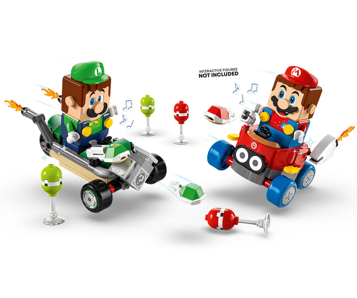 Интерактивна игра – карайте Biddybuggy или Tri-Speeder с LEGO® Mario™, LEGO® Luigi™ или LEGO® Peach™ (фигурите не са включени), за да задействате звукови/визуални ефекти от Mario Kart™ за клаксони, дрифт и други;
