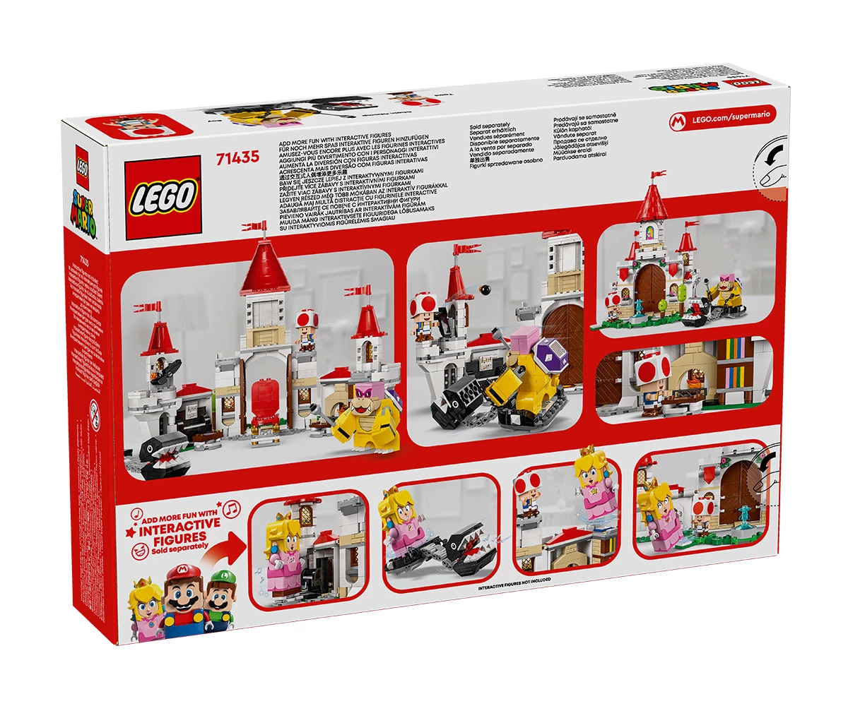 Размери – Моделът-играчка на замъка в този комплект от 738 части е с размери над 26 см височина, 31 см ширина и 21 см дълбочина и може да се добави към други комплекти LEGO® Super Mario™, които се продават отделно;