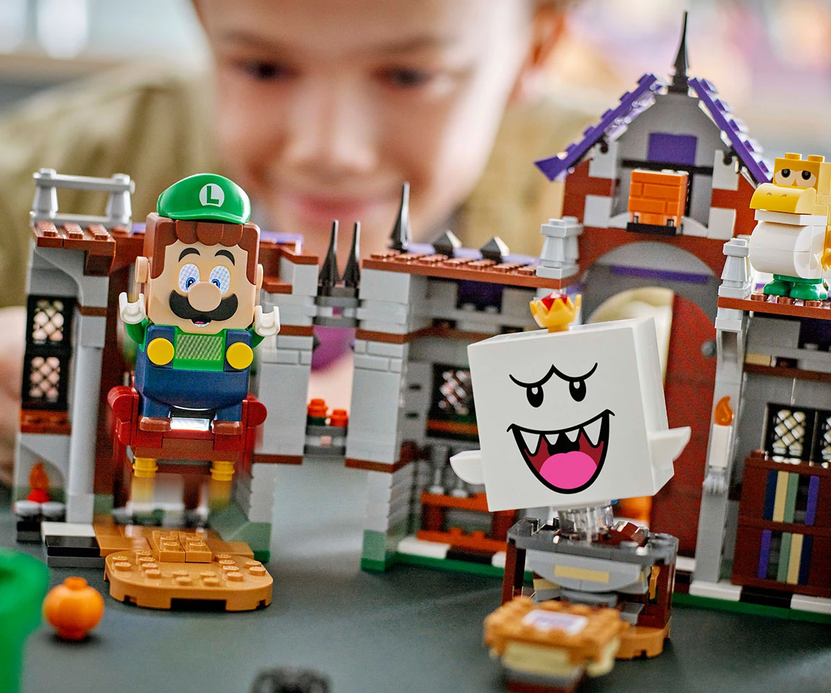 Интерактивна дигитална игра – Помогнете на LEGO® Mario™, LEGO® Luigi™ или LEGO® Peach™ (фигурите не са включени) да намерят ключа за сандъка със съкровището, да свалят King Boo от масата в двора и други;