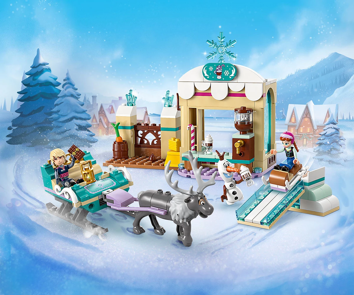 Играчки конструктор за създаване на истории – с този строителен комплект LEGO®феновете на Disney могат да използват въображението си за зимни забавления с шейни или да се насладят на горещ шоколад и лакомства с Анна, Кристоф, Олаф и Свен;