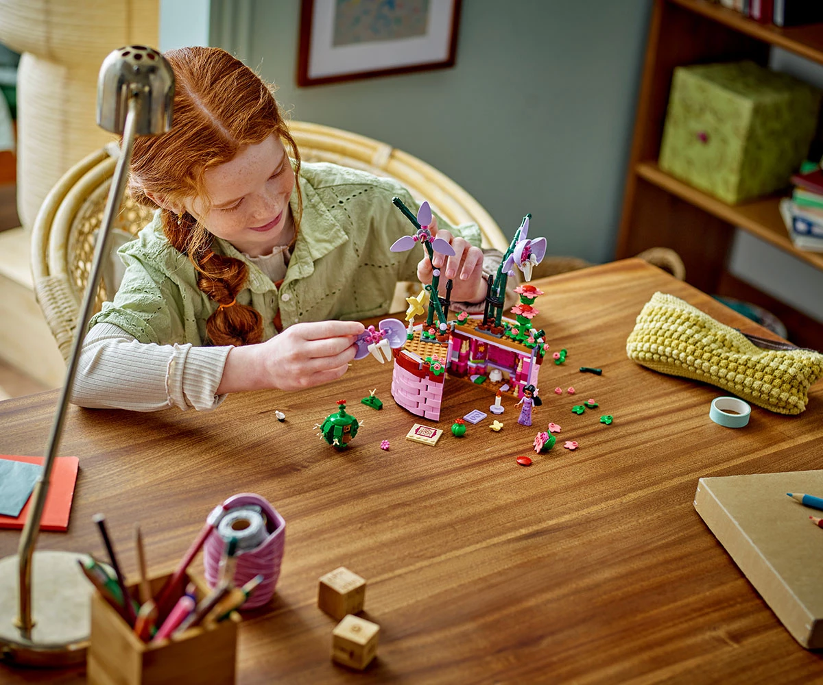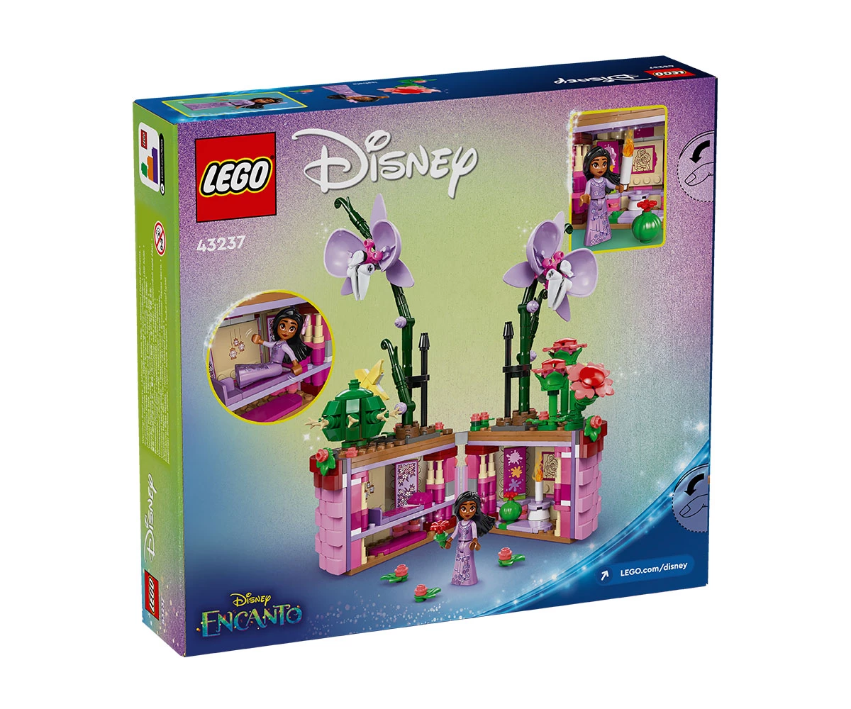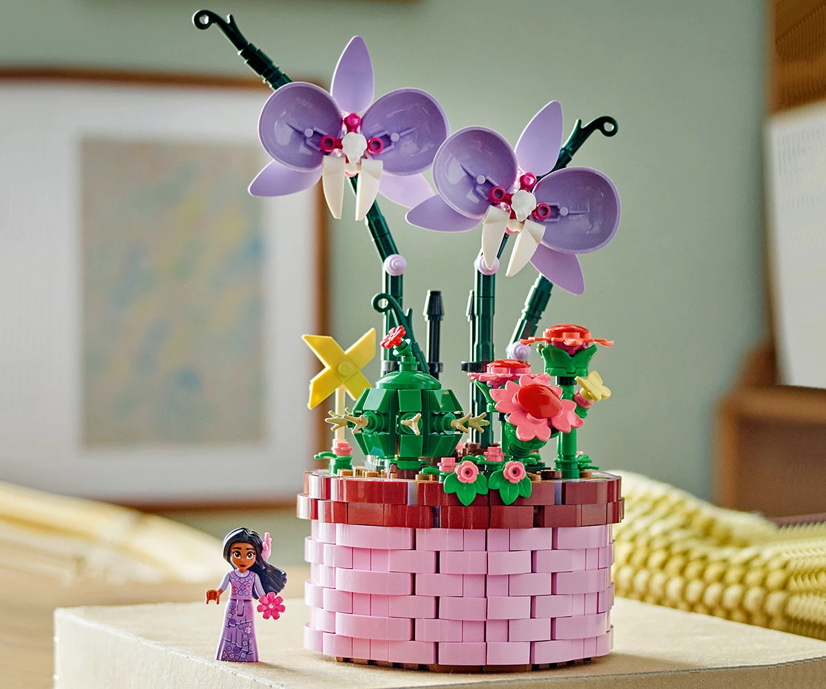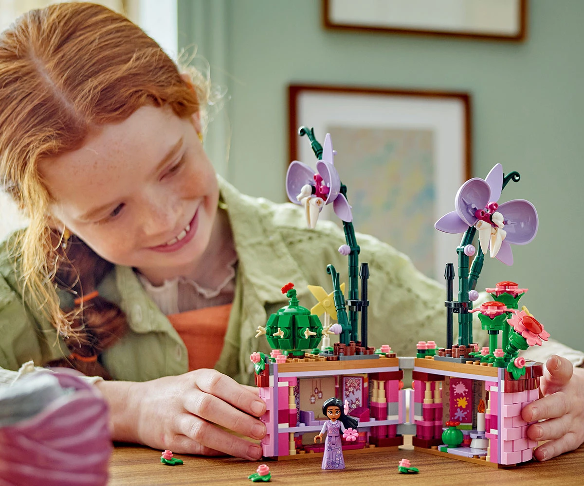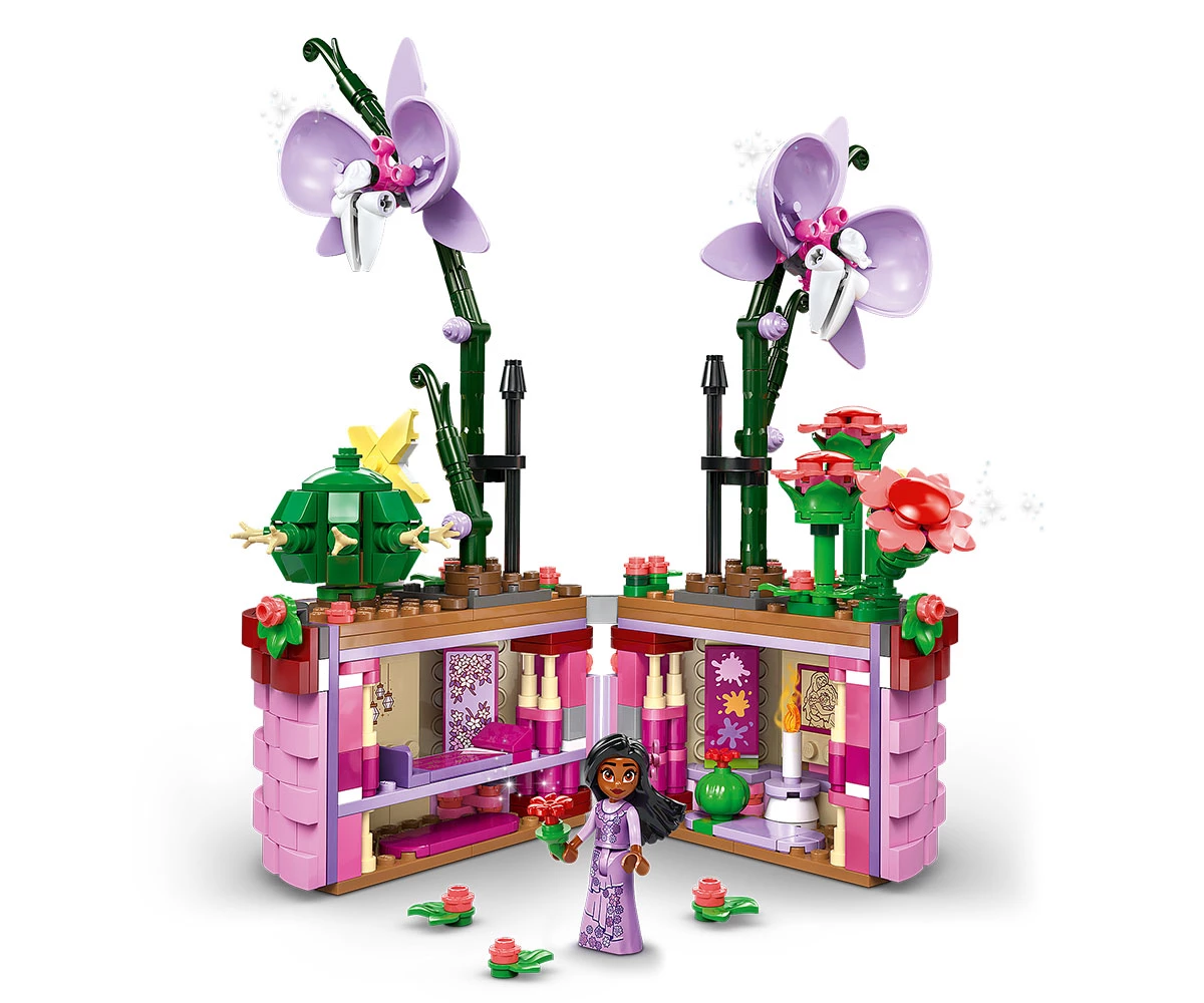 Творчески възможности – комплектът за конструиране включва отваряща се саксия с дизайн на кошница, вдъхновен от филма, цветя и фигура миникукла на Изабела от LEGO® ǀ Disney Encanto;