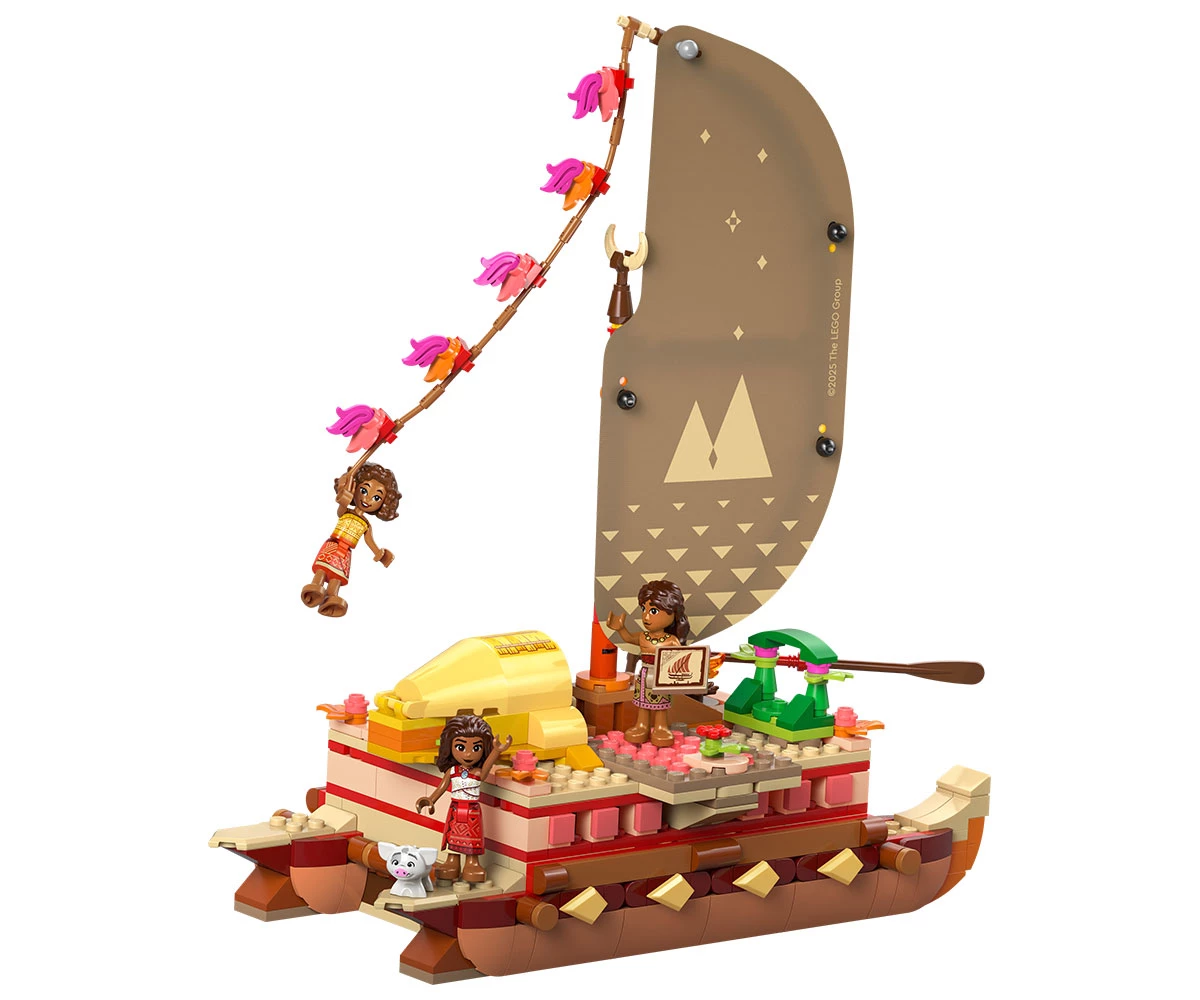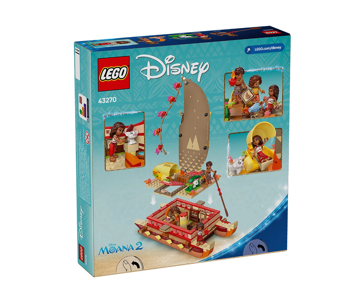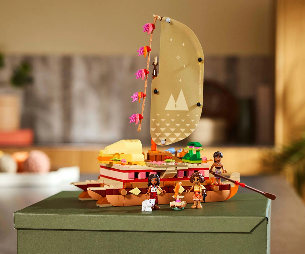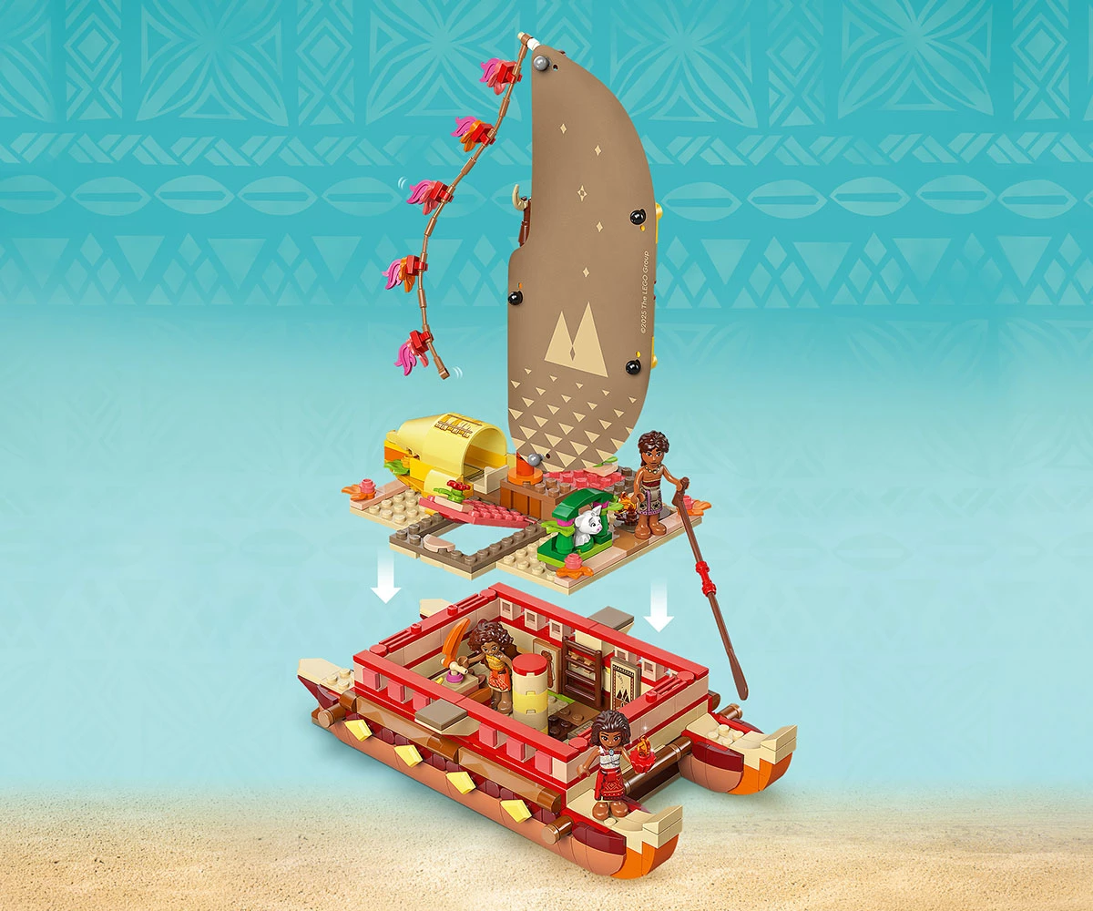 Комплект с модел – включва двукорпусно кану за конструиране с текстилно платно, подвижна палуба и жилищна зона под палубата, плюс четирима филмови герои на LEGO® ǀ Disney и много детайли;