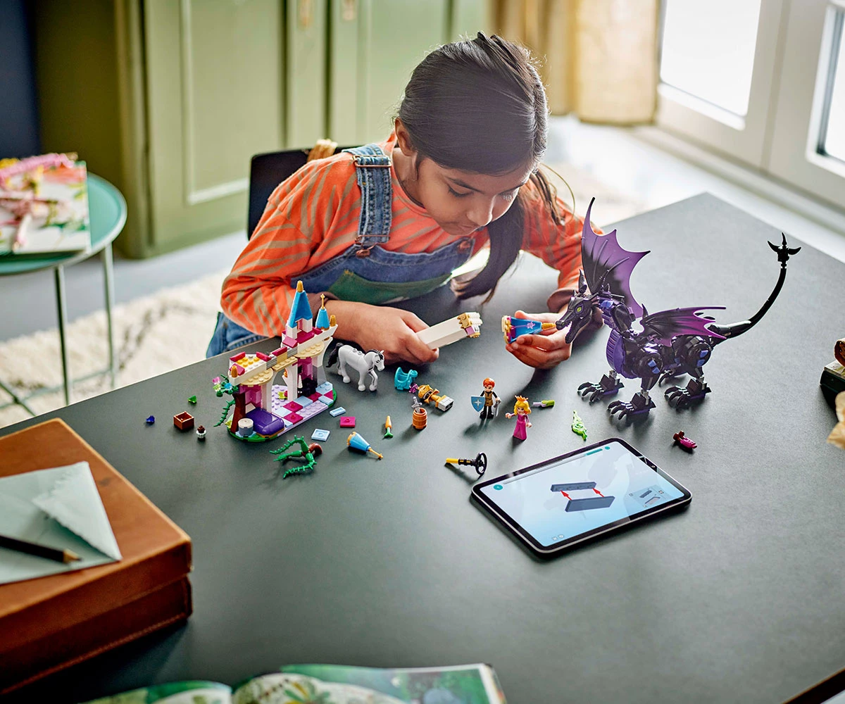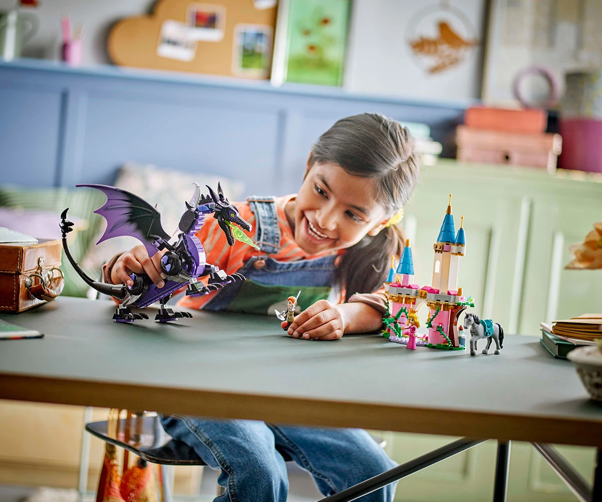 Дракон за построяване за деца – подарете на момичета и момчета на възраст 7+ този комплект за игра със Злодеида в драконова форма и разпалете креативността, докато децата разиграват собствени истории за Спящата красавица;