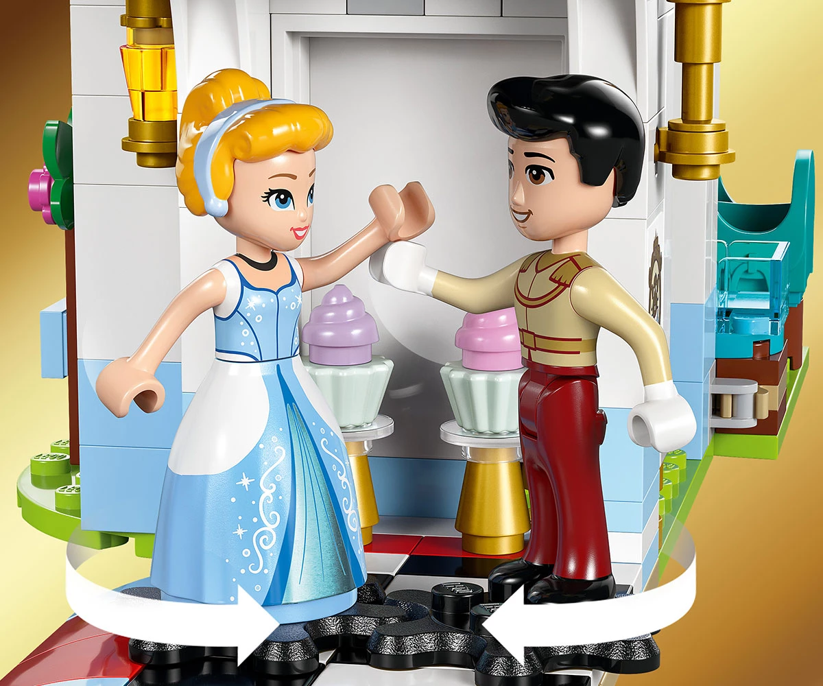 Функции на фантастична играчка за конструиране – поставете принцесата на Disney Пепеляшка и Чаровния принц на въртящия се под, за да могат да танцуват, или заменете сбруята на коня със седло или чанта;
