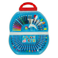 Комплектът съдържа: 12 миницветни молива, 6 маркера, 24 пастела, гума, 2 минимолива, острилка, 4 плаката, лист със стикери, опаковани в практично куфарче с дръжка;