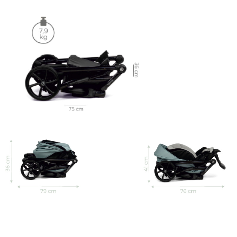 Основата на коша за новородено, подложката за крачета на седалката, както и коша за багаж са изработени от висококачествена, издръжлива на натоварване ЕКО кожа;