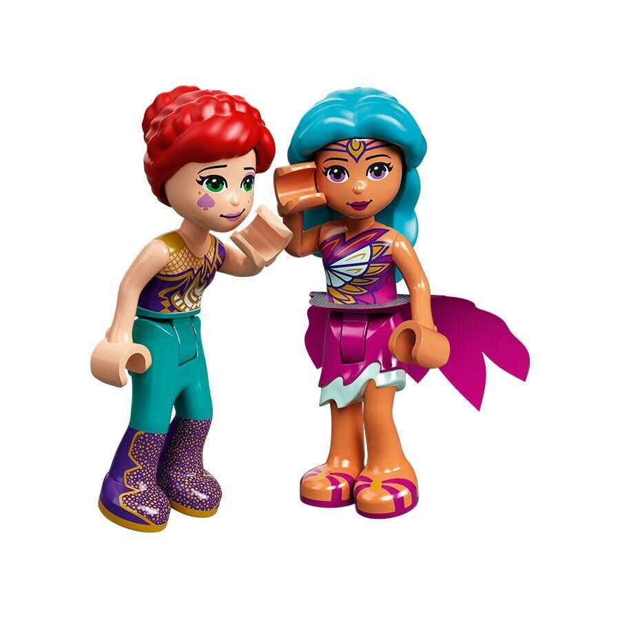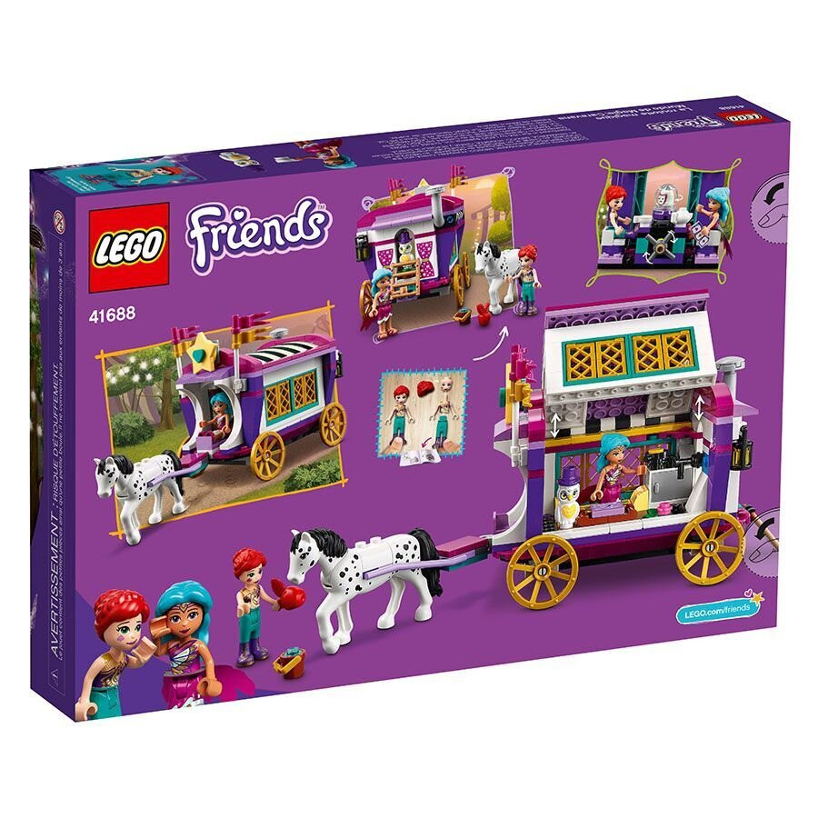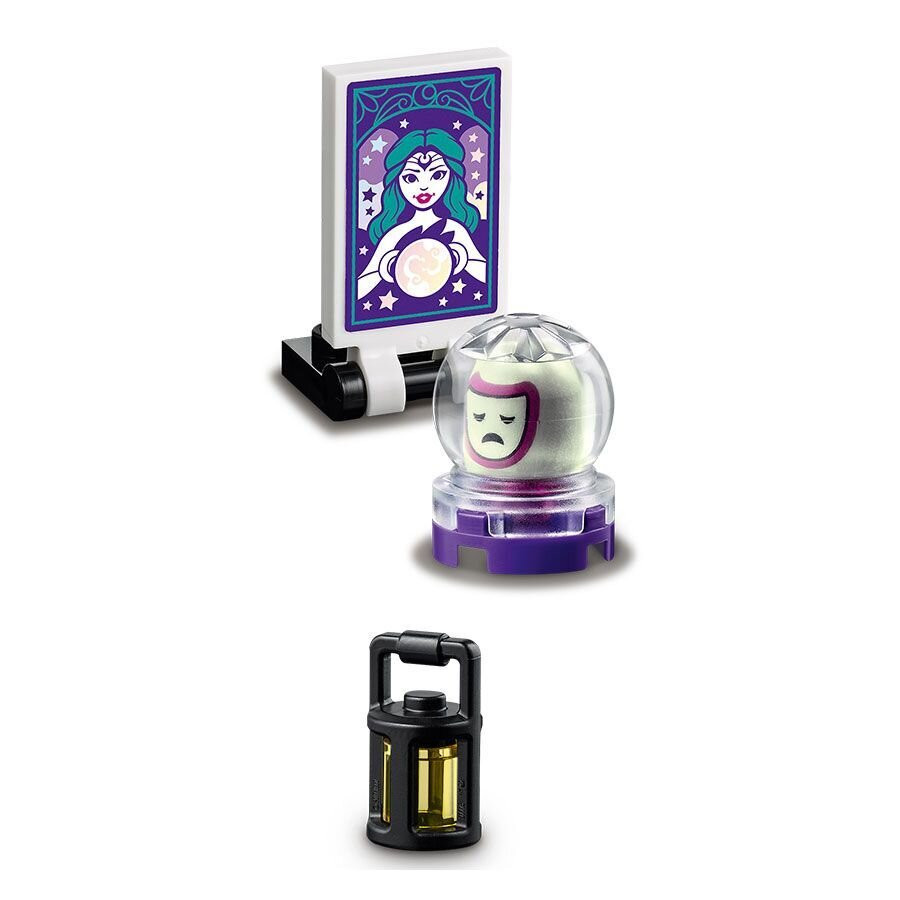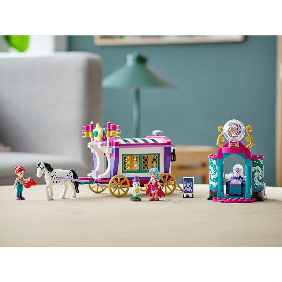 Комплектът включва каравана играчка, палатка на гадател, 2 мини кукли и фигури на кон и сова;