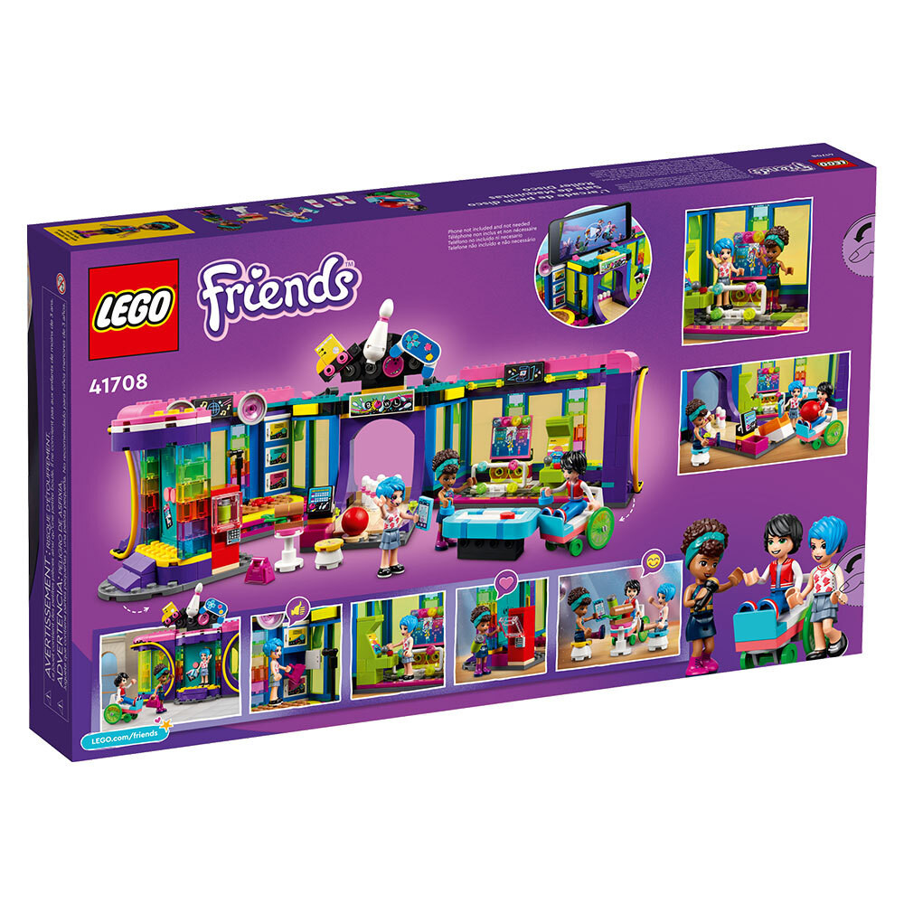 Децата помагат на LEGO Friends Андреа да обуе кънките си и да се забавлява с приятели в дискотеката с ролери;