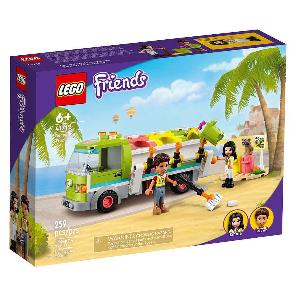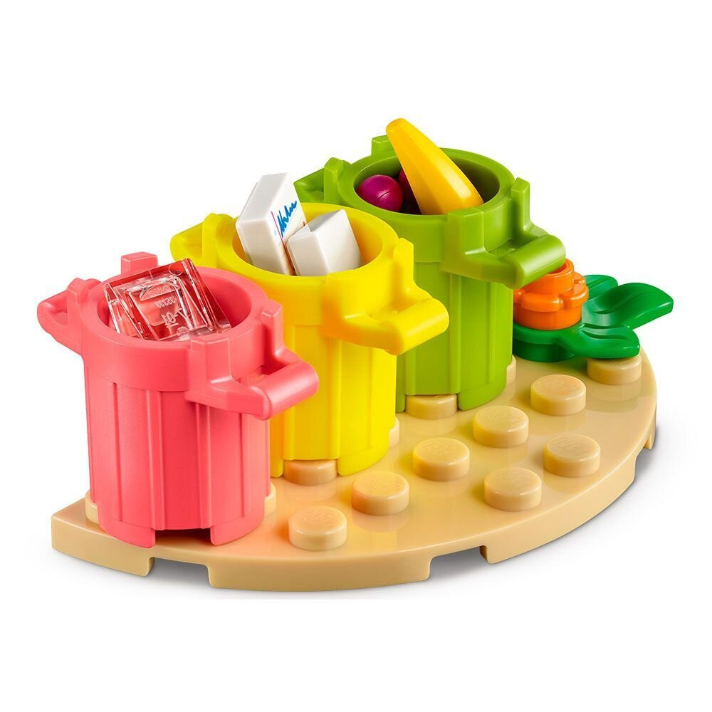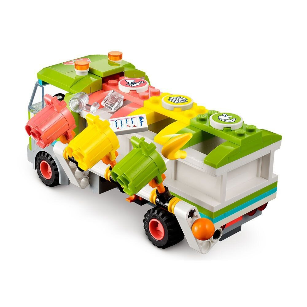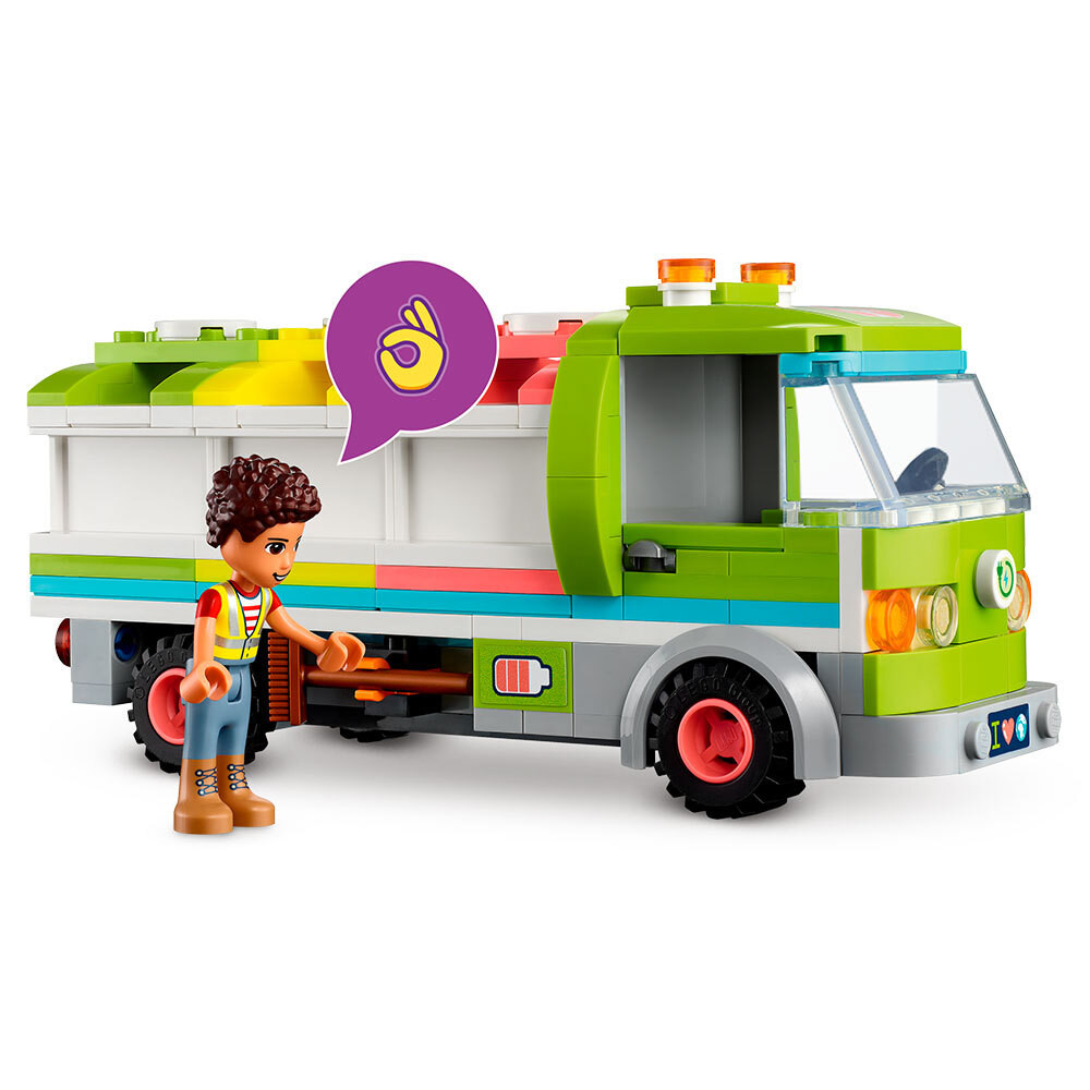 Децата помагат на LEGO® Friends Ема и Ривър да събират боклука с щипката и лопатата, да сортират боклука и да прикрепят кофите за боклук към камиона;