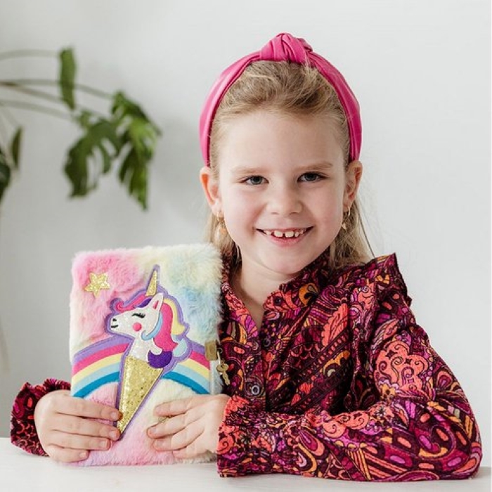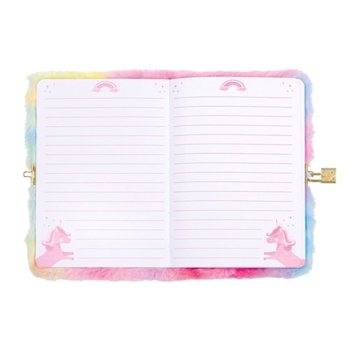 Пухкав таен тефтер/дневникн с твърда корица, подплатена с мека плюшена материя в цветовете на дъгата;